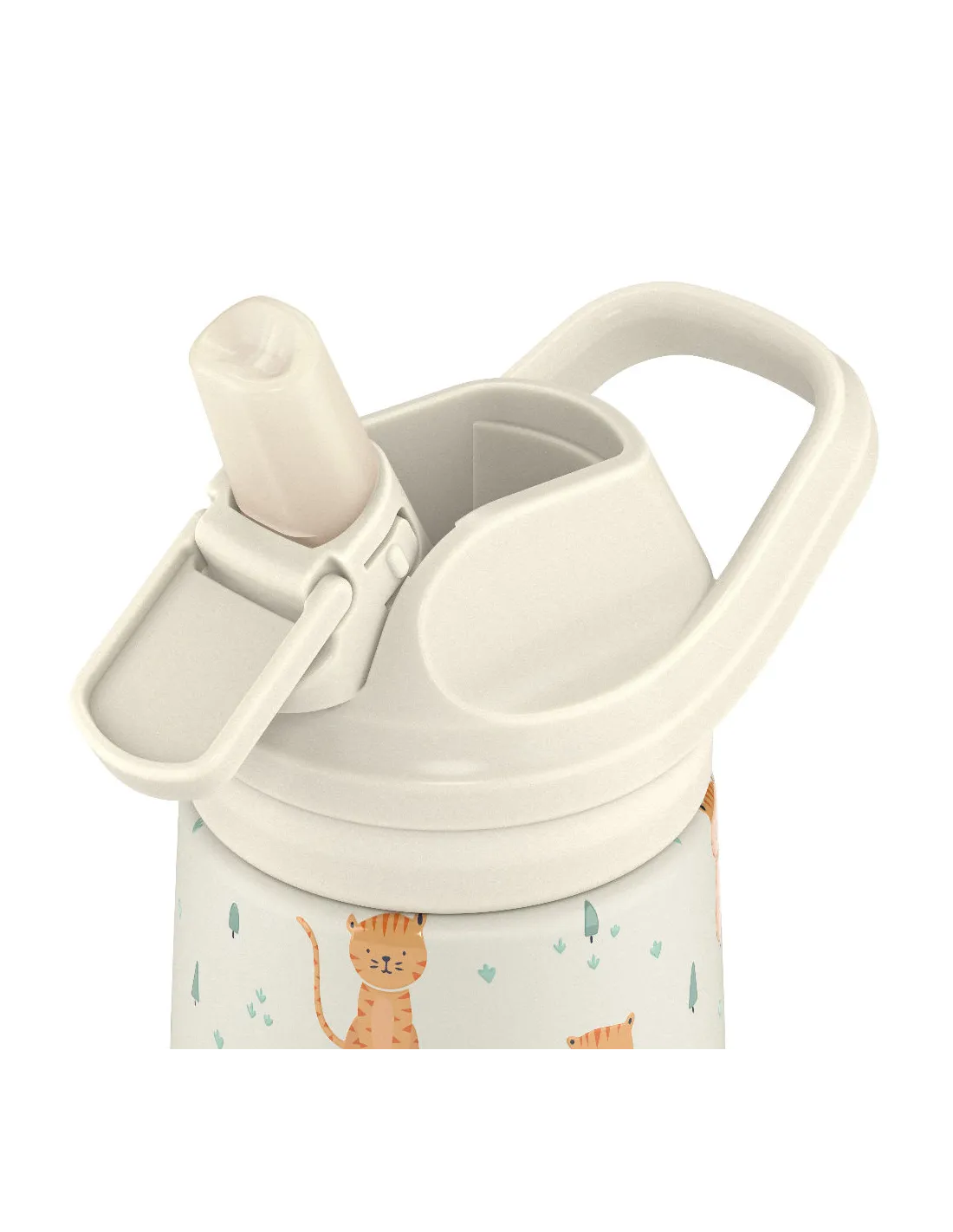 Butelka wyposażona jest w silikonowy ustnik Biteflow, który umożliwia łatwe picie poprzez delikatne przygryzienie. Zamknięcie typu click skutecznie chroni ustnik przed kurzem, bakteriami i zabrudzeniami, zapewniając maksymalną higienę i bezpieczeństwo.
