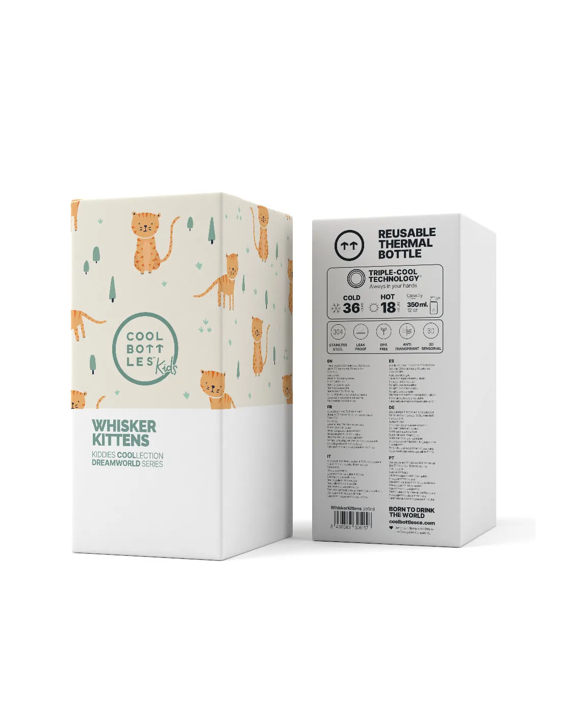 Cool Bottles Kiddies 350 ml Whisker Time to wysokiej jakości butelka termiczna dla dzieci, zaprojektowana z myślą o maluchach od 12. miesiąca życia.