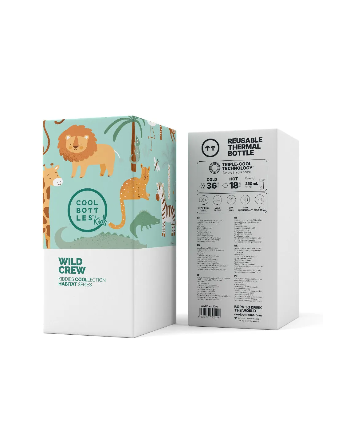 Cool Bottles Kiddies 350 ml Wild Crew to wysokiej jakości butelka termiczna dla dzieci, zaprojektowana z myślą o maluchach od 12. miesiąca życia.