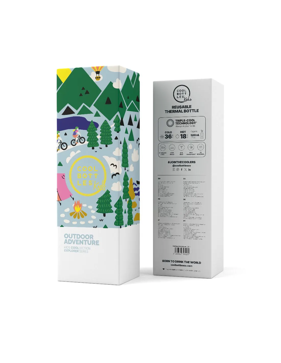 Cool Bottles Butelka termiczna Kids 500 ml Outdoor Adventure to niezawodna i bezpieczna butelka na wodę dla dzieci, idealna do szkoły, przedszkola, na spacer czy w podróży.