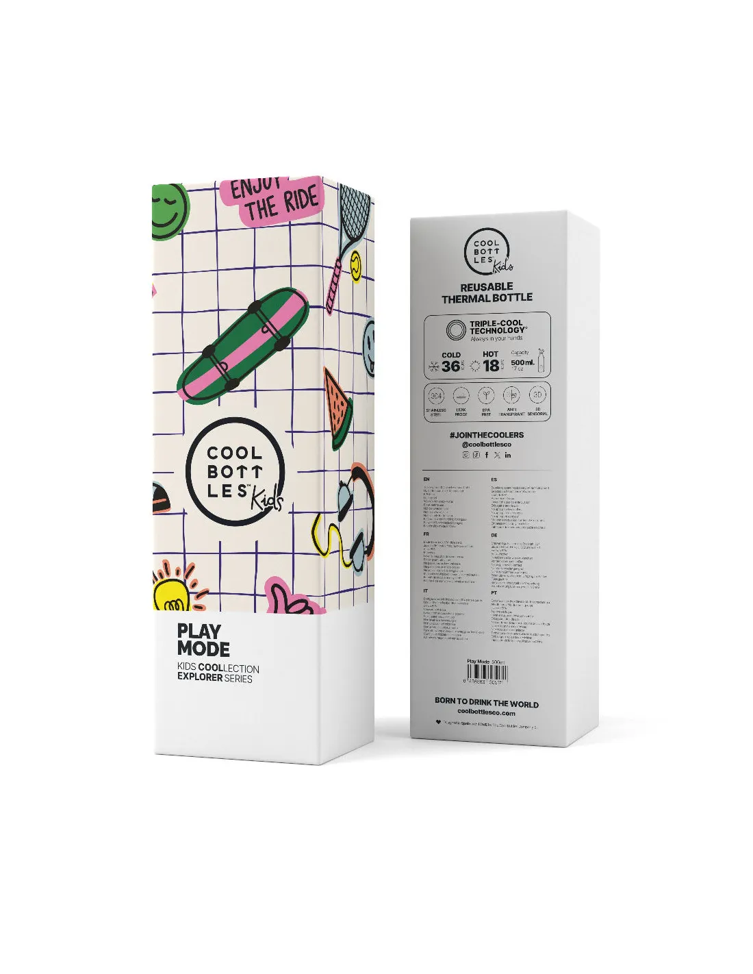 Cool Bottles Butelka termiczna Kids 500 ml Play Mode to niezawodna i bezpieczna butelka na wodę dla dzieci, idealna do szkoły, przedszkola, na spacer czy w podróży.