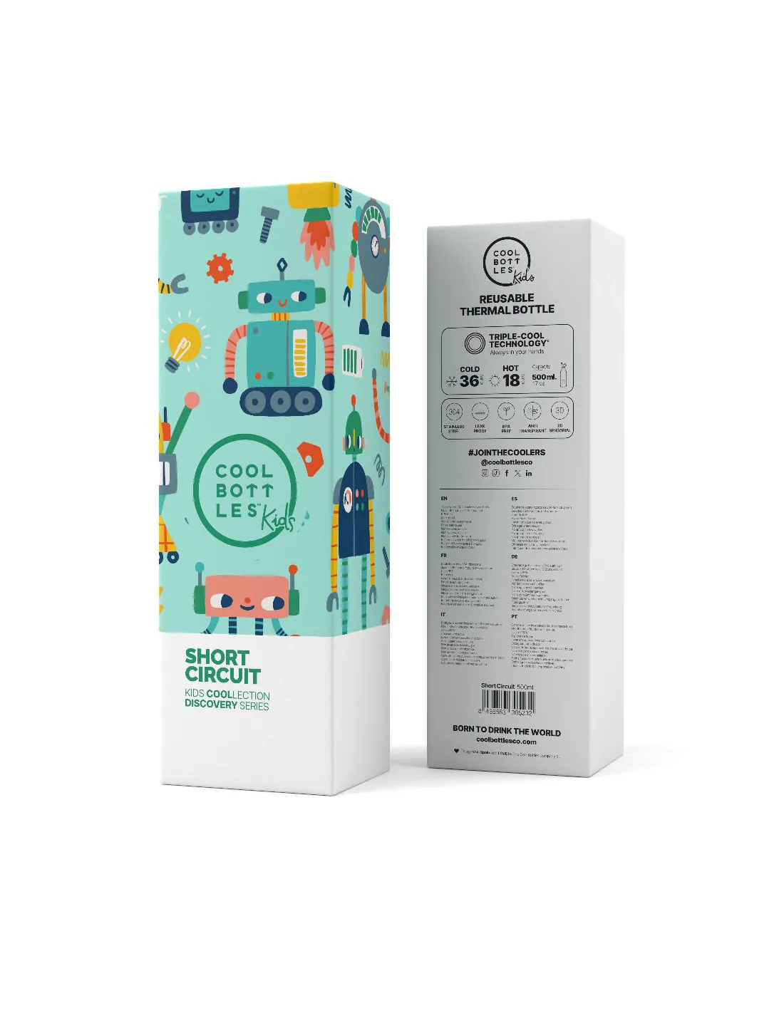 Kolekcja Cool Bottles™ Kids to barwny świat pełen przyjaznych motywów, zwierząt i roślin, które rozwijają dziecięcą wyobraźnię i zachęcają do regularnego nawadniania. Wzór Short Circuit wyróżnia się energicznym stylem i nowoczesnym charakterem, pozwalając dziecku wyrazić swoją osobowość.