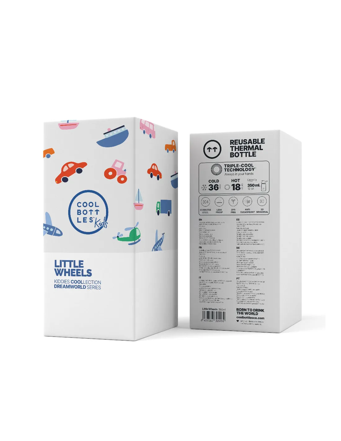 Cool Bottles Kiddies 350 ml Little Wheels to wysokiej jakości butelka termiczna dla dzieci, stworzona z myślą o maluchach od 12. miesiąca życia.