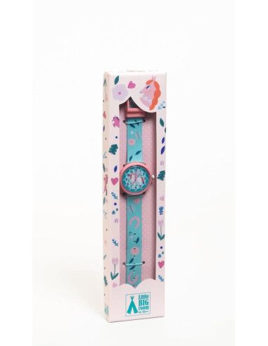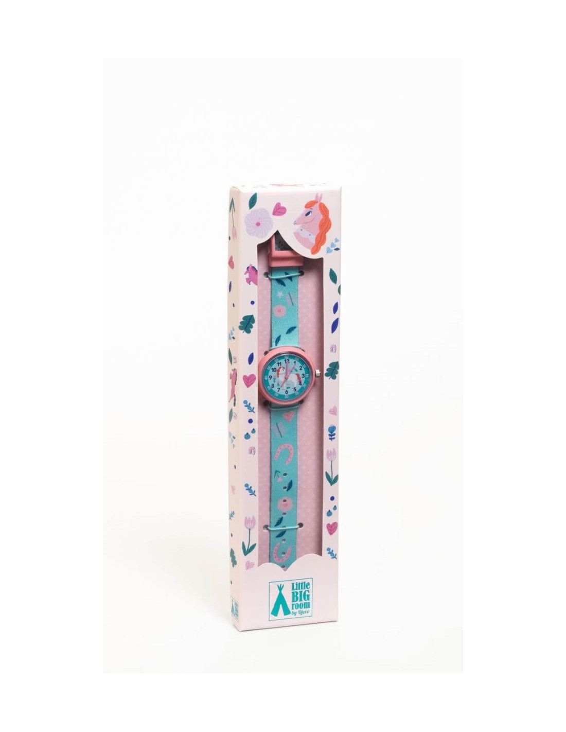 Mały zegarek dziecięcy na tekstylnym pasku będzie pasował na każdą mała rękę. Zegarek ma wielokolorowy pasek i tarczę z numerami wskazującymi godziny i minuty w odstępach 5,10,15,20 ....