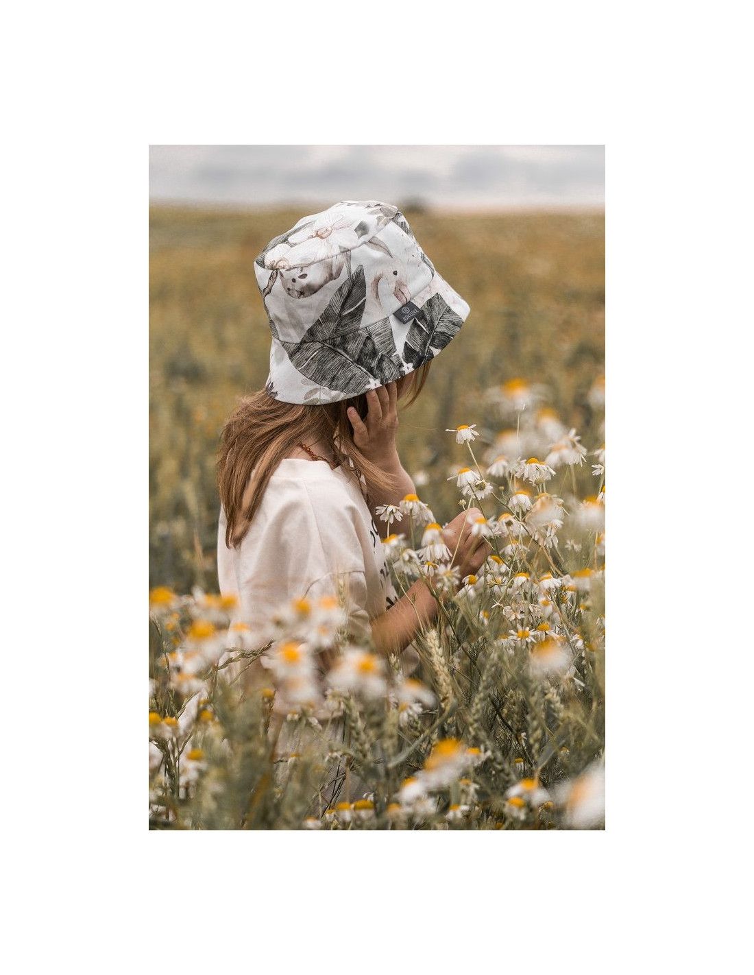 Wygodny, bawełniany kapelusz, który świetnie chroni główkę przed wiatrem i promieniami słońca. W około ma duże rondo, które dodatkowo chroni buźkę, ramiona, oraz kark przed promieniami słonecznymi.