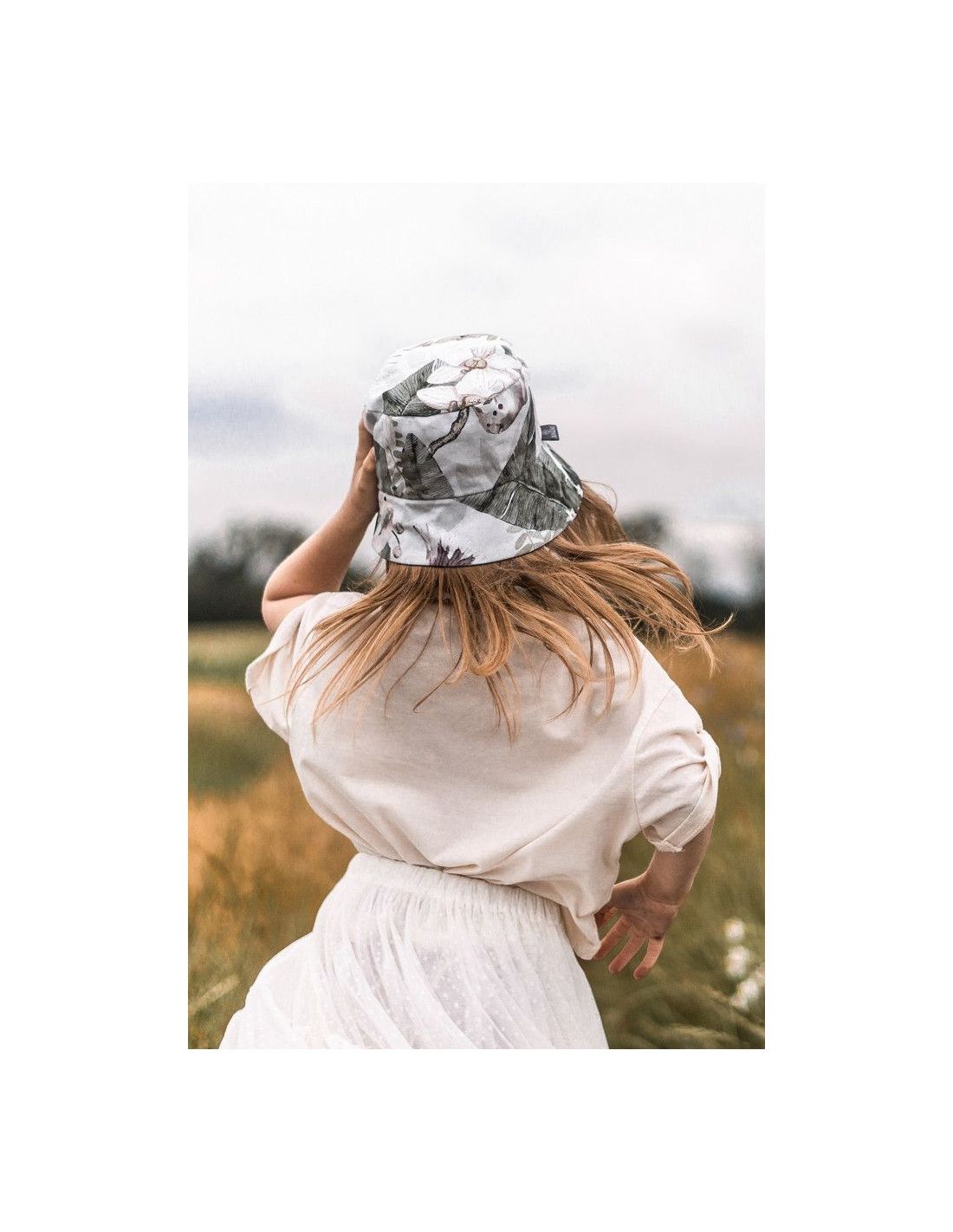 Wygodny, bawełniany kapelusz, który świetnie chroni główkę przed wiatrem i promieniami słońca. W około ma duże rondo, które dodatkowo chroni buźkę, ramiona, oraz kark przed promieniami słonecznymi.