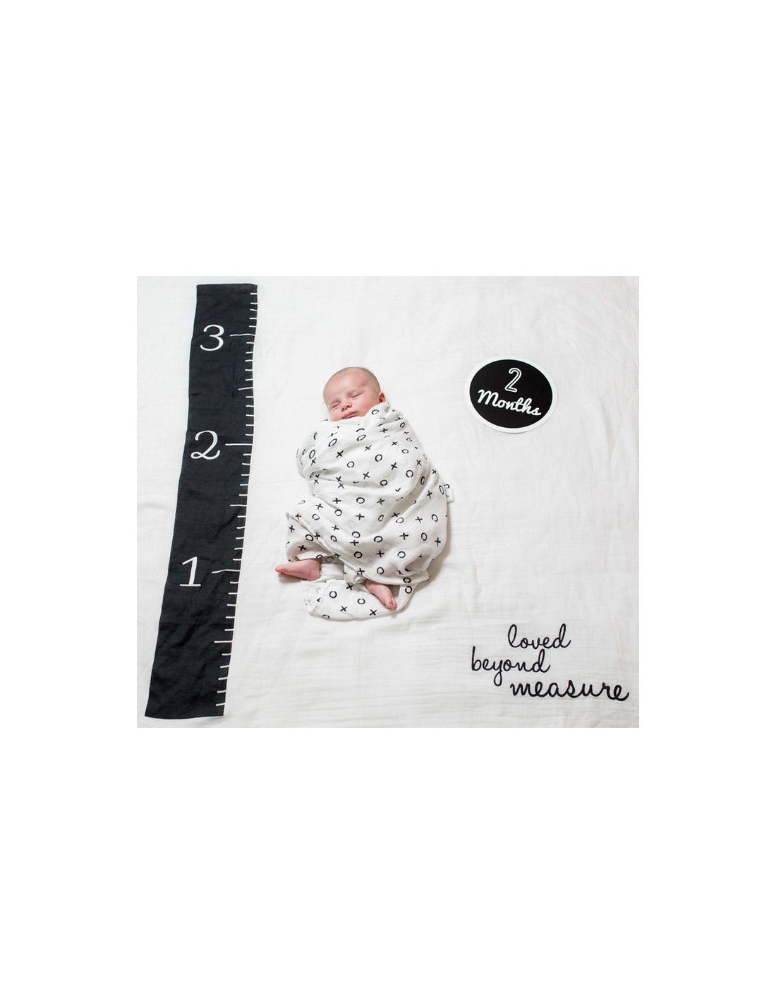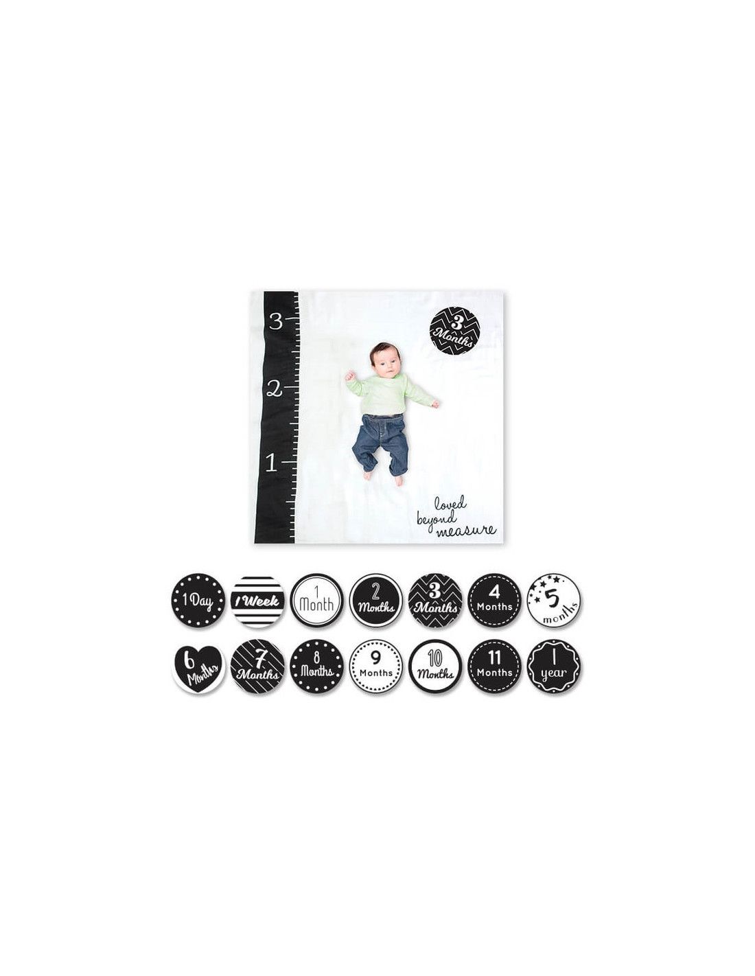 Zestaw PIERWSZY ROCZEK Fotokocyk + Karty Loved Beyond Measure -piękny prezent z okazji narodzin dziecka. Mięciutki muślinowy kocyk, z pięknym obrazkiem i hasłem przewodnim oraz 7 dwustronnych kart pomogą odliczać i uwieczniać każdy miesiąc życia Waszego szczęścia. Kart jest siedem - oprócz oznaczenia poszczególnych miesięcy możemy także uwiecznić pierwszy dzień i pierwszy tydzień itd. Maluszka.