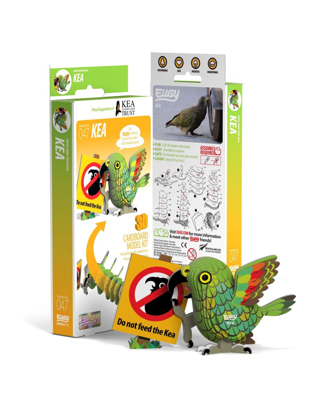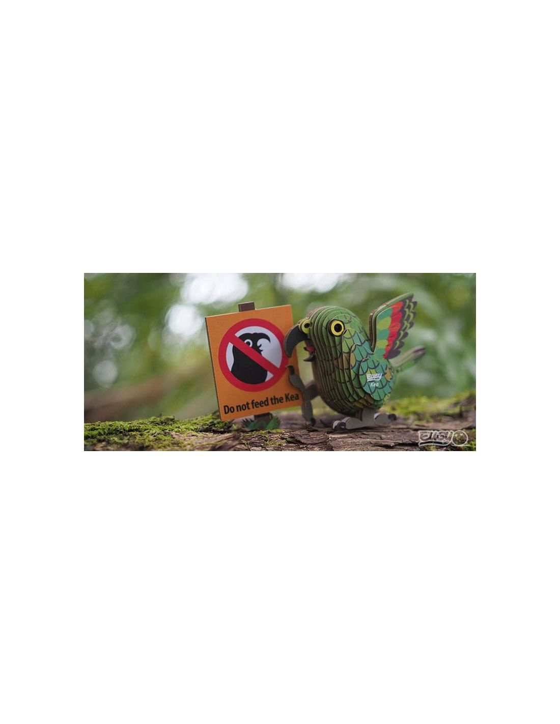 Kea Eugy ma realistyczne szczegóły jak heterodaktylowe nogi co oznacza, że dwa palce znajdują się z przodu, a dwa z tyłu. Otwarte skrzydła papugi mają śliczne, żywe kolory.