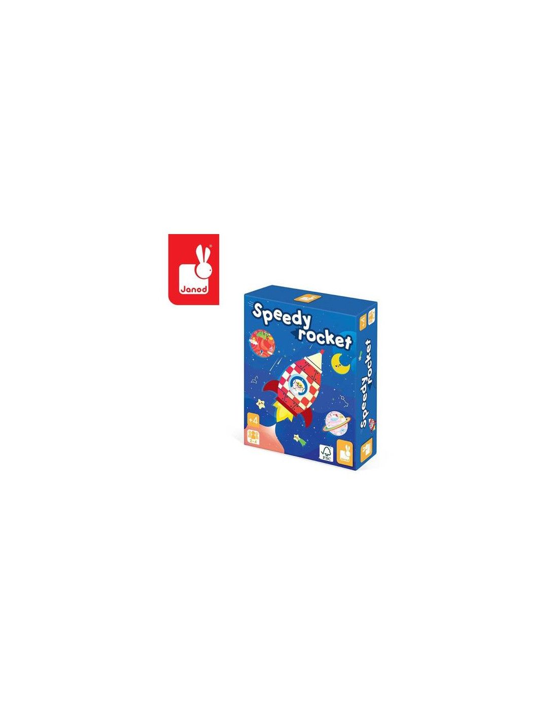 Gra zręcznościowa Rakieta francuskiej marki JANOD to wspaniała zabawa zarówno dla dzieci, jak i rodziców. W skład zestawu wchodzi 6 kartonowych planet, 1 czarna dziura i 1 rampa startowa, 4 drewniane krążki-rakiety oraz 20 kartonowych żetonów z ilustracjami zasobów, które należy dzięki rakietom dostarczyć na planety. Celem gry jest zaopatrzenie planet, wysyłając ładunek na rakietach poprzez pstrykanie w nie palcami z miejsca przy wyrzutni w stronę odpowiedniej planety. Gracz, który jako pierwszy dostarczy swoje żetony z ekwipunkiem – wygrywa. Gra ta ćwiczy koordynację ruchową, wspiera relację ręka-oko, uczy cierpliwości i skupienia.
