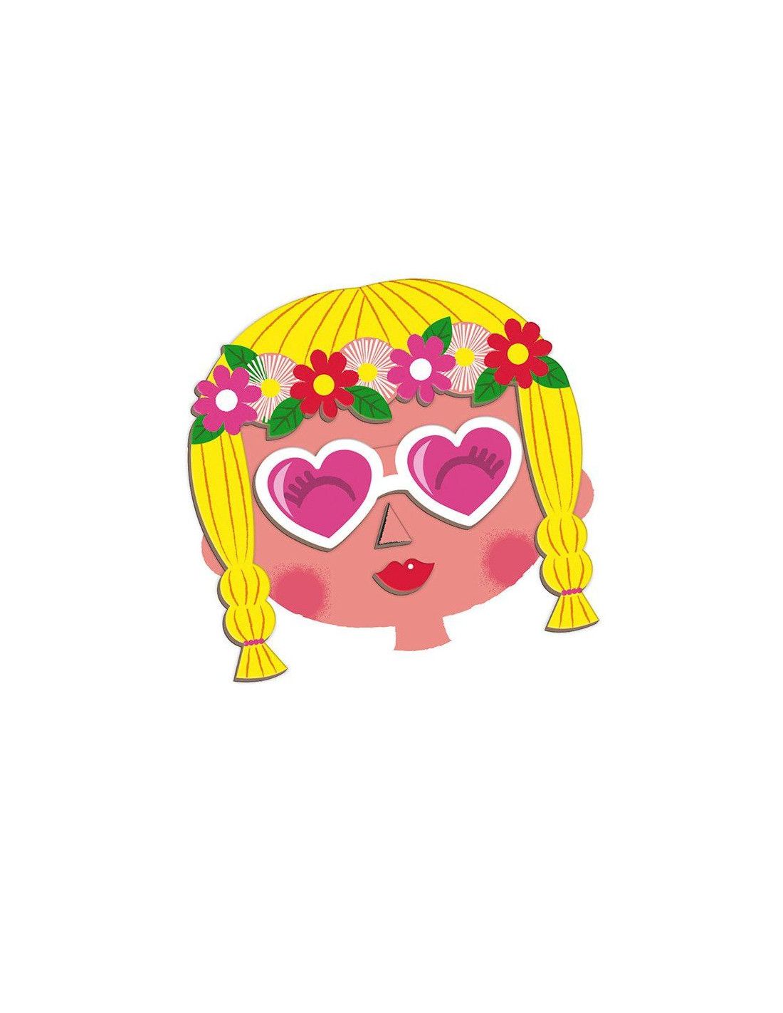 - 55 kolorowych magnesów z elementami dziewczęcych twarzy (oczy, usta, nosy, włosy) oraz dodatkami (spinki, nakrycia głowy).