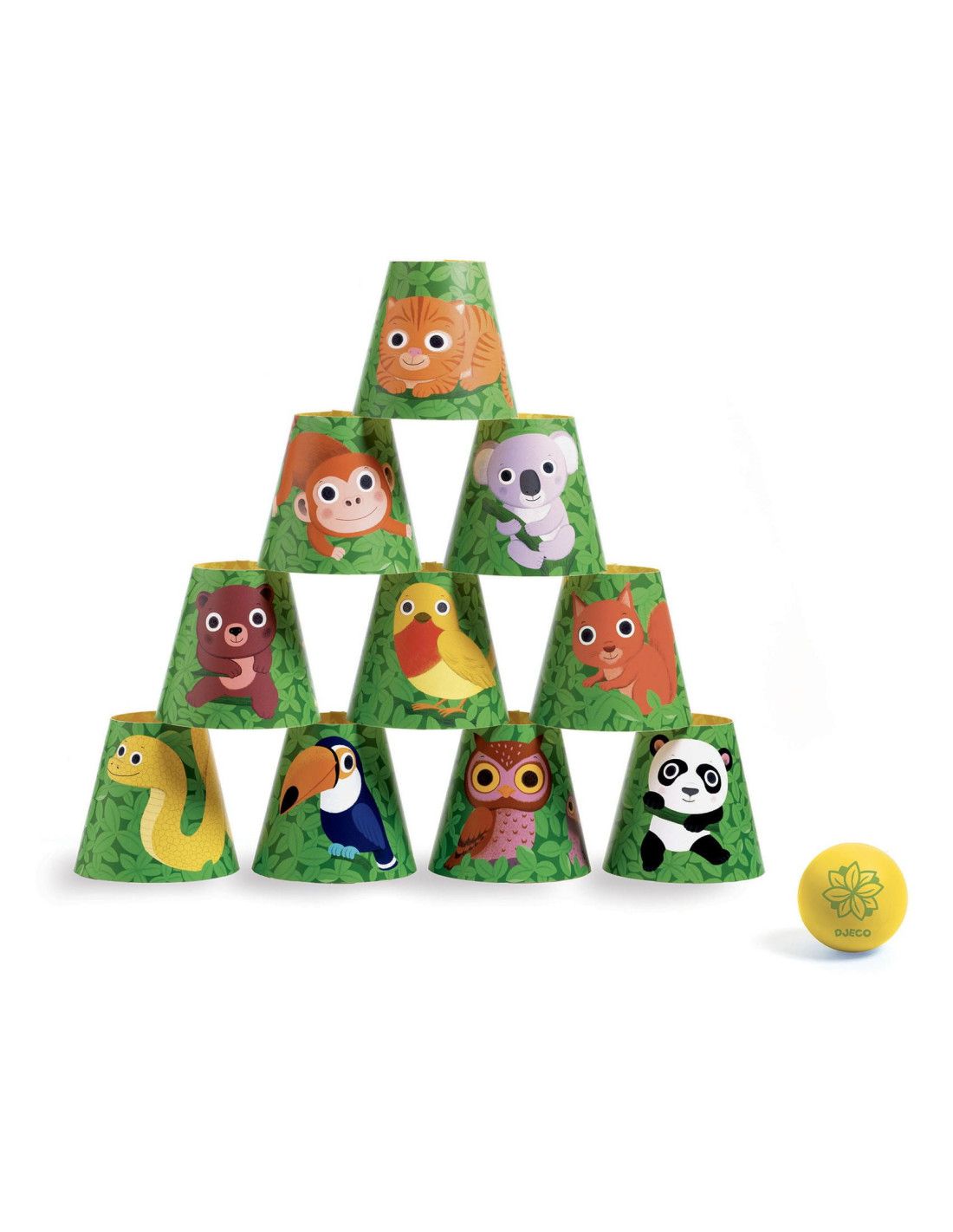 Gra zręcznościowa Djeco, która polega na strącaniu kubeczków, dołączoną do zestawu piłką. Świetna zabawa dla całej rodziny, już dwuletnie dzieci będą miały mnóstwo zabawy ze strącania wieży z kubeczków.