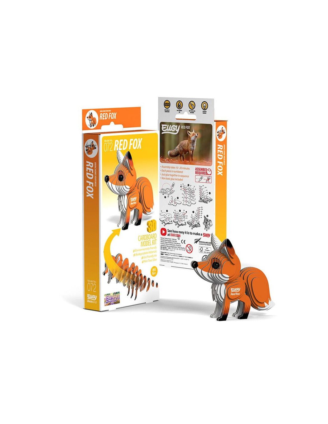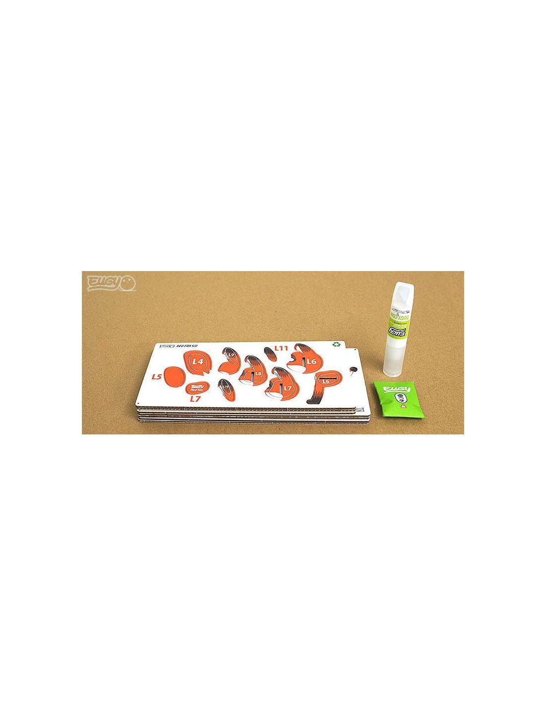 Eugy zaprojektowane w Nowej Zelandii są wykonane z przyjaznego dla środowiska kartonu pochodzącego z recyklingu i farby na bazie ryżu. Zestaw zawiera ponumerowane elementy układanki, nietoksyczny klej oraz instrukcję do zbudowania lisa. Zbierz całą serię zwierząt, ptaków, dinozaurów i wiele innych. Dla dzieci w wieku 6 lat +.