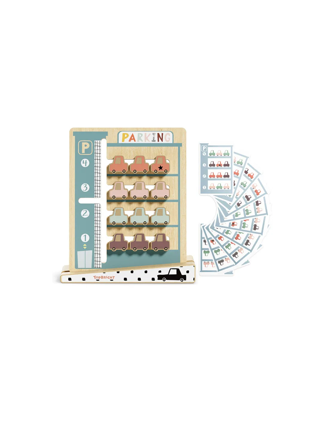 Układanka logiczna dla dzieci Parking Topbright to angażująca gra edukacyjna 3+, która w formie zabawy uczy logicznego myślenia, koncentracji oraz planowania przestrzennego. Zadaniem dziecka jest prawidłowe „zaparkowanie” samochodów na wielopoziomowym parkingu, zgodnie z zasadami gry lub wyzwaniami z kart zadań.