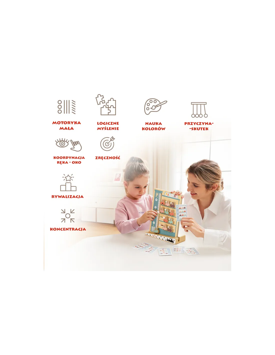 Elementy układanki zostały zaprojektowane tak, aby były łatwe do uchwycenia przez małe rączki, co zwiększa komfort zabawy i wspiera samodzielność dziecka. Kompaktowy rozmiar sprawia, że gra świetnie sprawdzi się również w podróży.