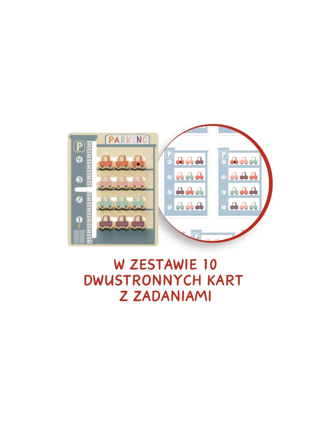 Zawartość: parking, samochody, 10 dwustronnych kart zadań (20 wyzwań)