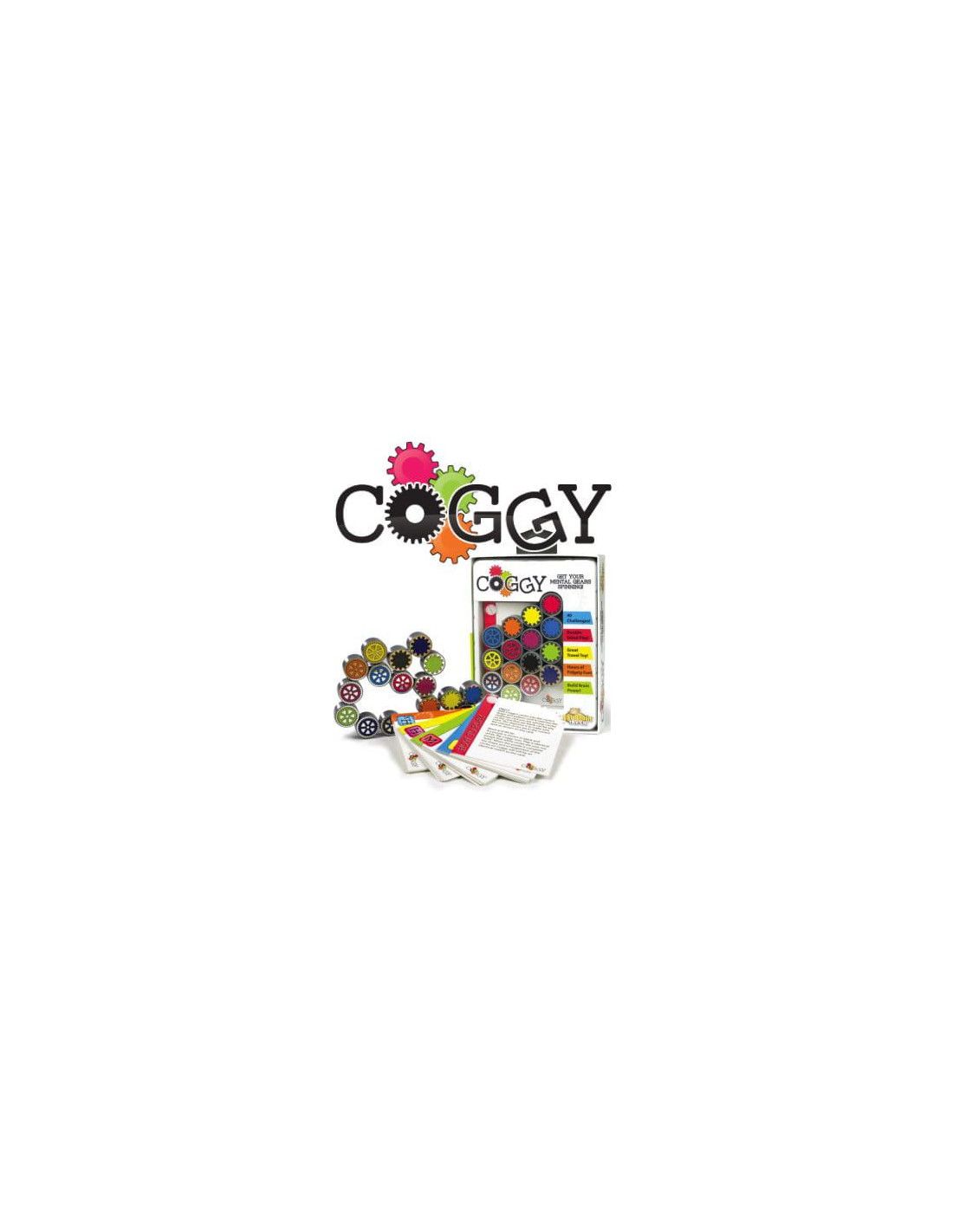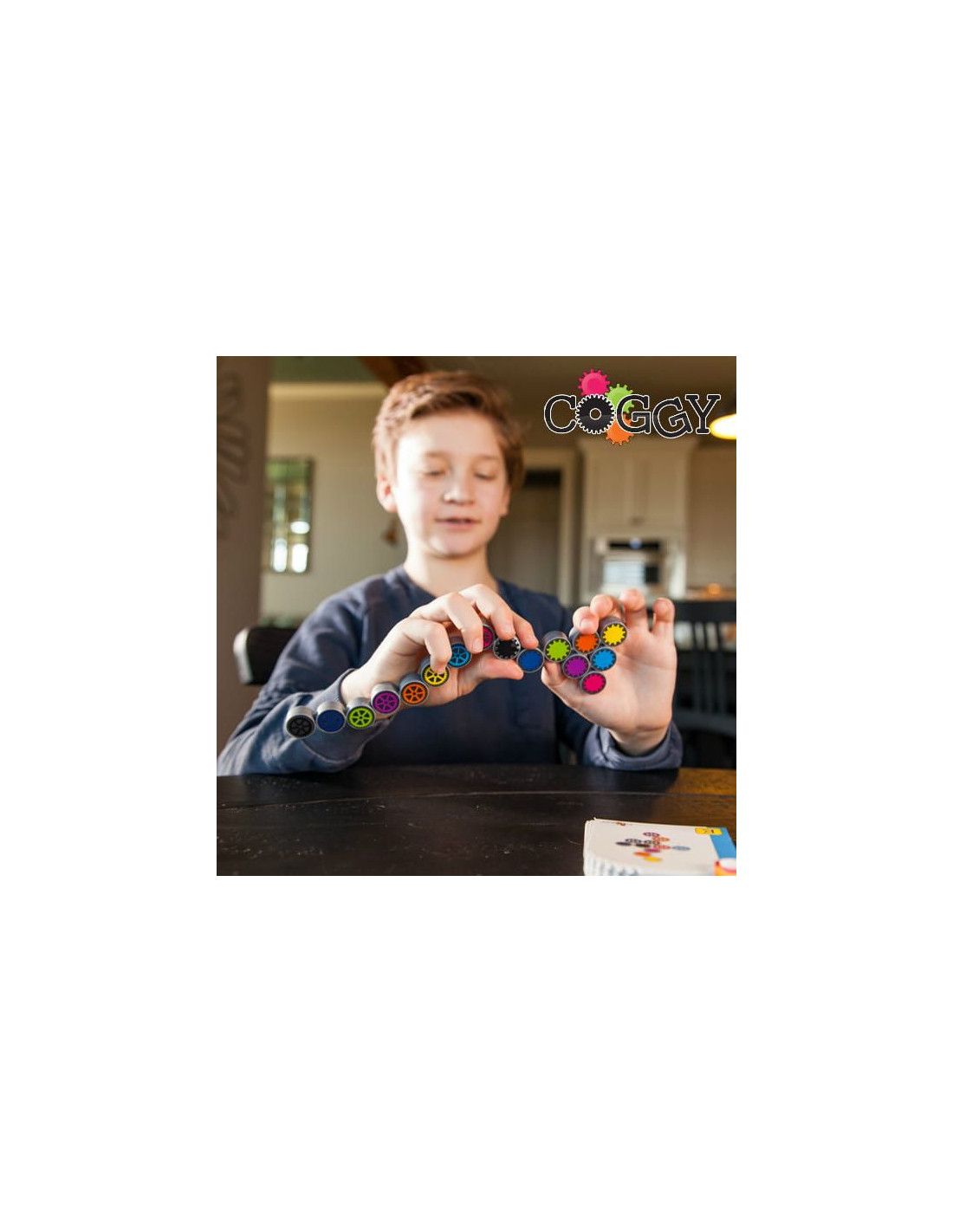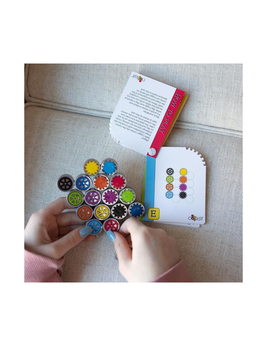 Coggy to 16 połączonych kółek zębatych, 40 wyzwań o 4 poziomach trudności (łatwe, średnie, trudne, bardzo trudne), obracaj, modeluj, układaj kolorowe kółka zębate, tak aby odtworzyć wzór na załączonych kartach. Coggy to gra, która rozwija inteligencję przestrzenno-wizualną, myślenie logiczne, zdolność krytycznego myślenia.