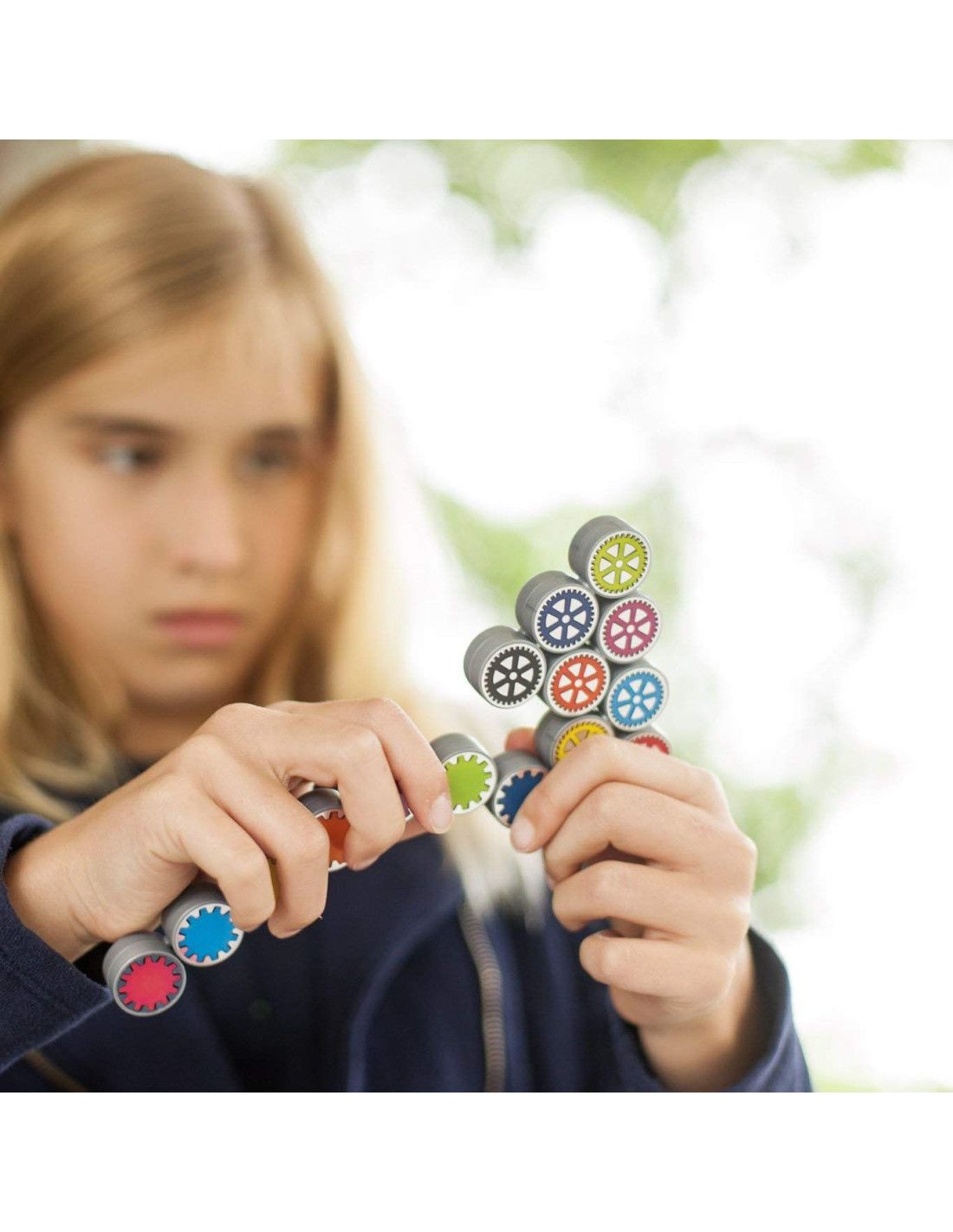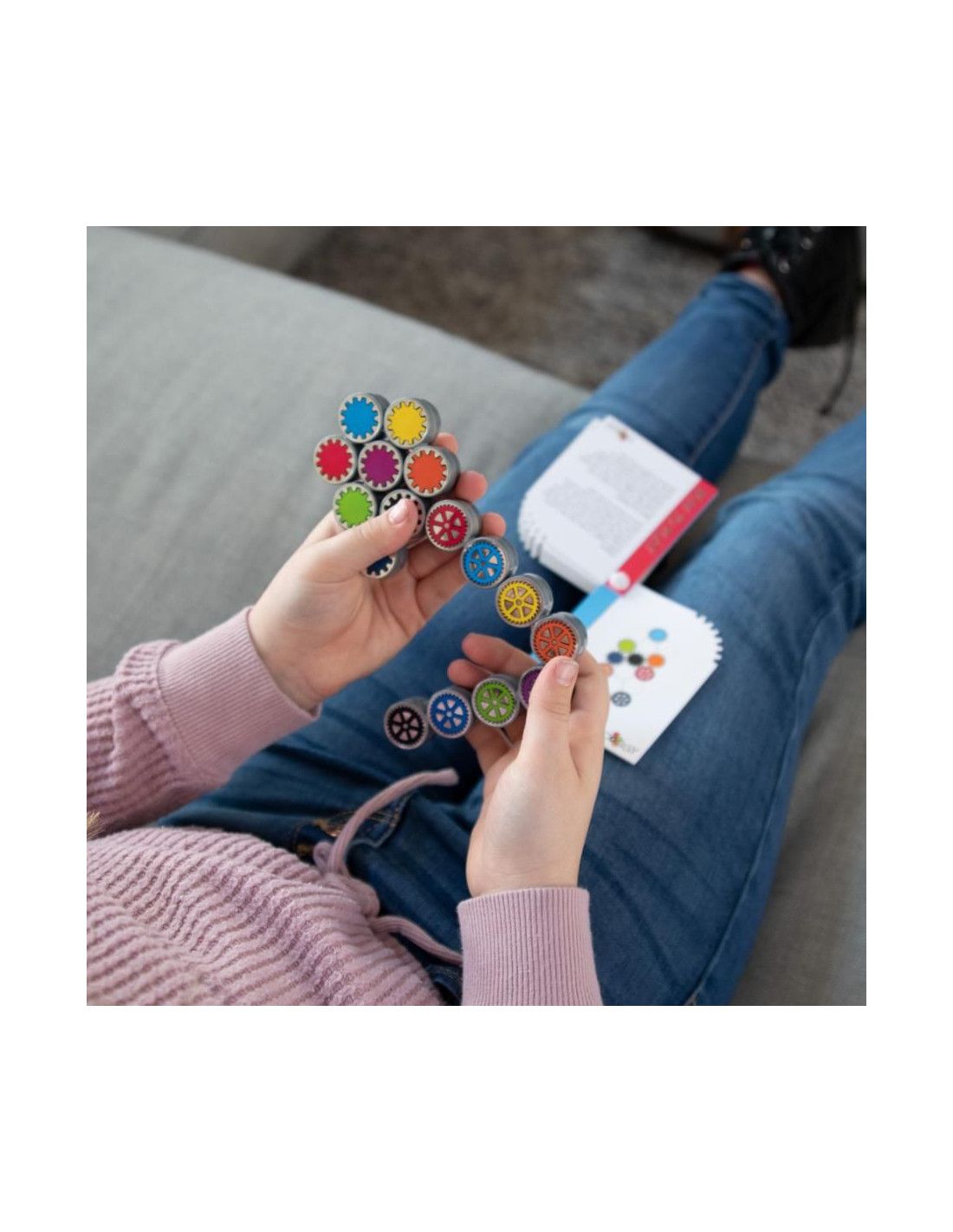 16 połączonych kółek zębatych, 40 wyzwań o 4 poziomach trudności (łatwe, średnie, trudne, bardzo trudne). Kolorowe kółka zębate można obracać, modelować, układać tak aby odtworzyć wzór na załączonych kartach. Dla dzieci w wieku 6 lat +.