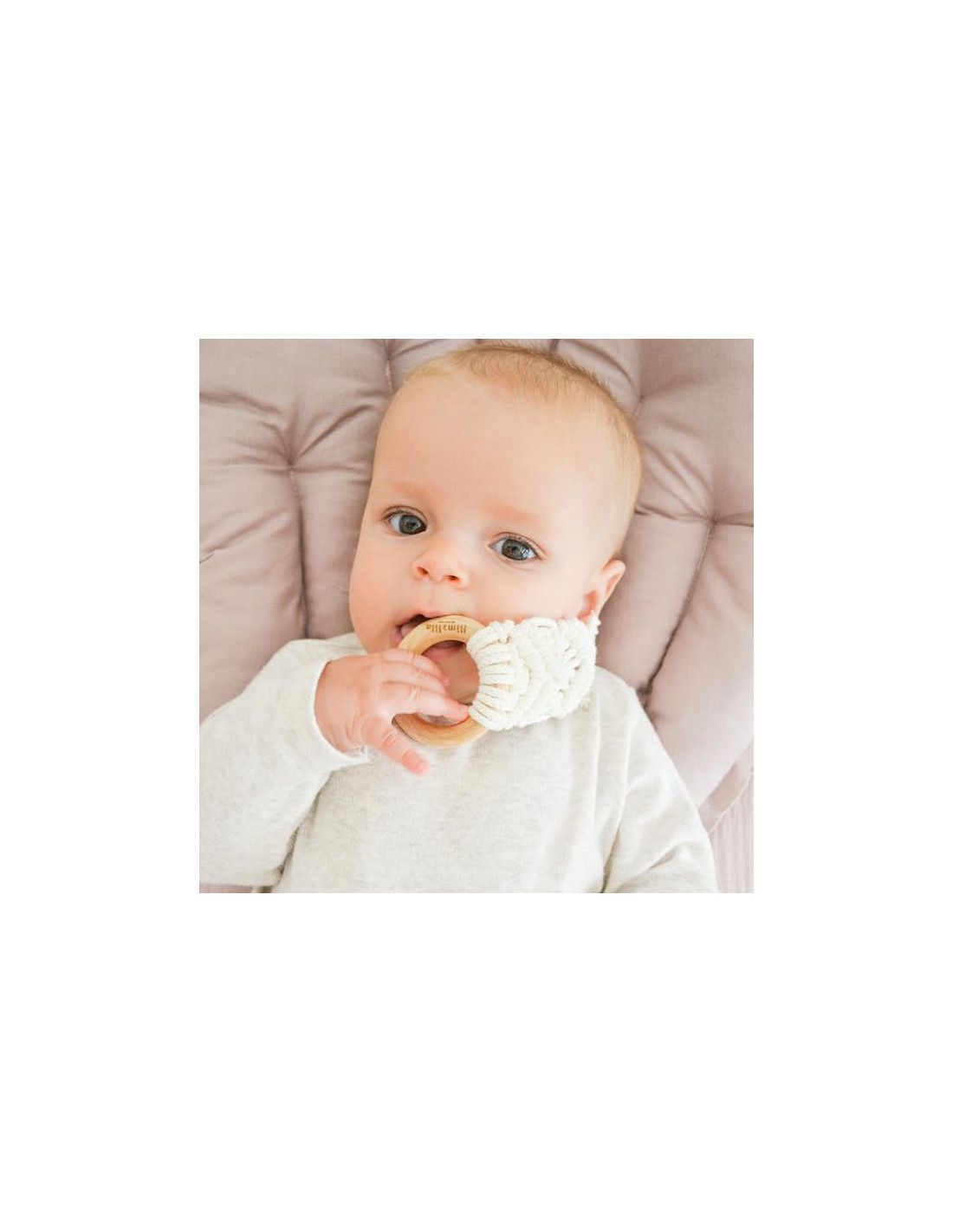 Wykonany został z najwyższej jakości drewna bukowego, a sznurek to 100% bawełna. Cały gryzak jest w pełni bezpieczny dla malucha, nie jest kolorowany ani klejony.