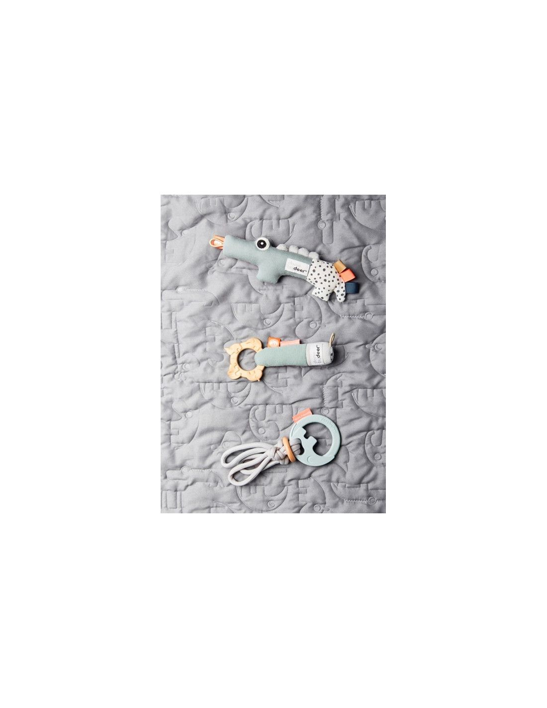 Grzechotka z gryzakiem w klasycznym i eleganckim kolorze, pomoże stymulować zmysły poznawcze dziecka. W wieku od 3 do 5 miesięcy dziecko zaczyna się interesować odkrywaniem otaczających go przedmiotów. Miękki gryzak ze zwierzątkami Done by Deer z pewnością zainteresuje malucha i ukoi ból podczas ząbkowania. Wykonana z przyjemnych materiałów jest miła i przyjemna w dotyku. Do tego kolorowe metki, zaciekawią każdego małego badacza. Zabawka idealna na prezent, dostępna jest też w większym zestawie Done by Deer.