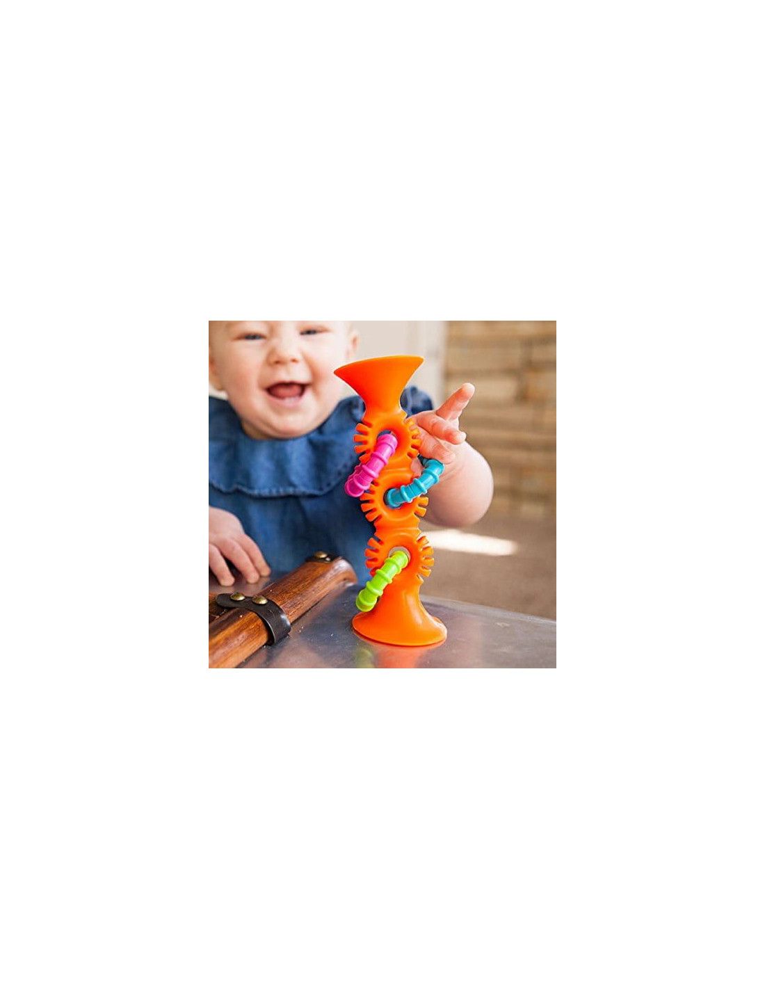 Jest piękna, silikonowa i kolorowa, co przyciąga uwagę maluchów. Jej różne faktury, grzechoczące elementy oraz zdolność przysysania się do różnych powierzchni czynią ją idealnym wyborem do zabawy, gryzienia, stawiania i dotykania.