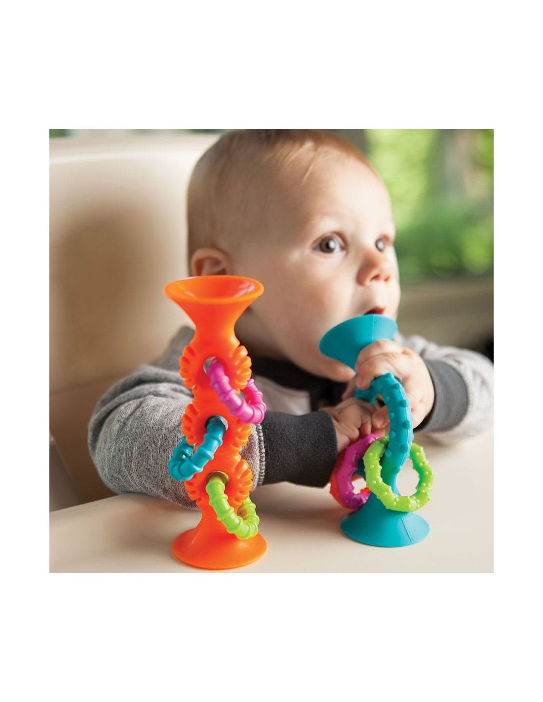 Grzechotka dla Niemowląt Bobo Przyssawki PipSquigz Loops Orange Fat Brain Toys