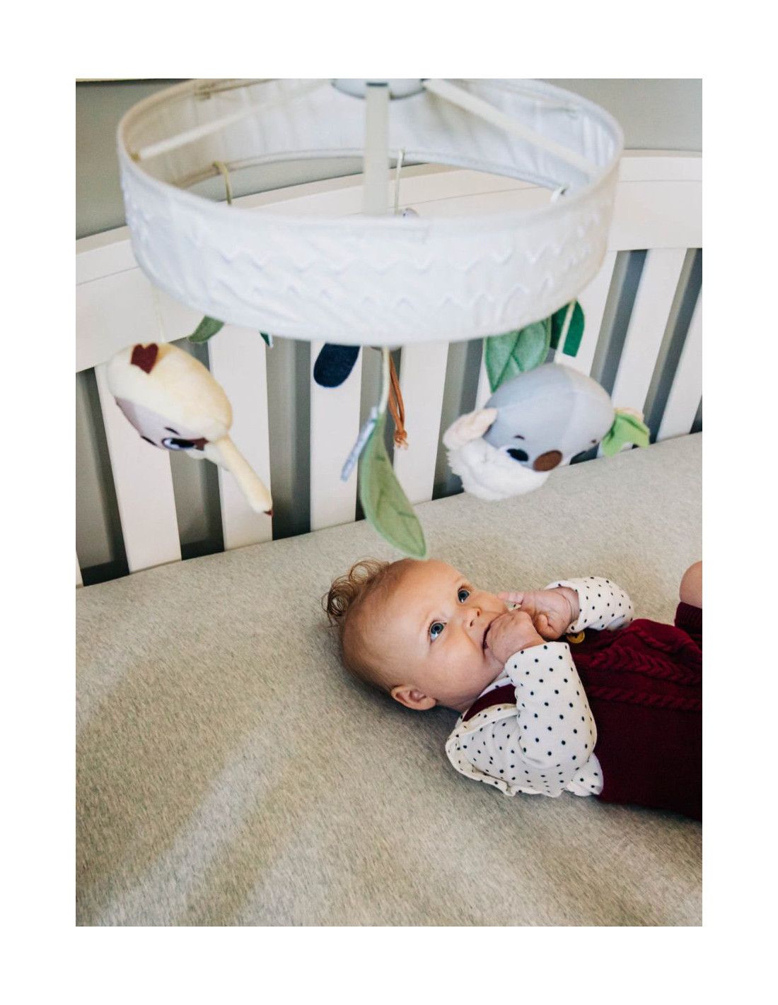 - Pluszowe zabawki i listki: Trzy urocze zawieszki i ozdobne detale przyciągają uwagę dziecka i stymulują rozwój sensoryczny.