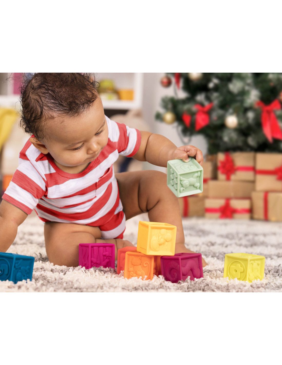 Zestaw Miękkich Klocków Sensorycznych B.Toys – 10 Miękkich Kolorowych Klocków Sensorycznych