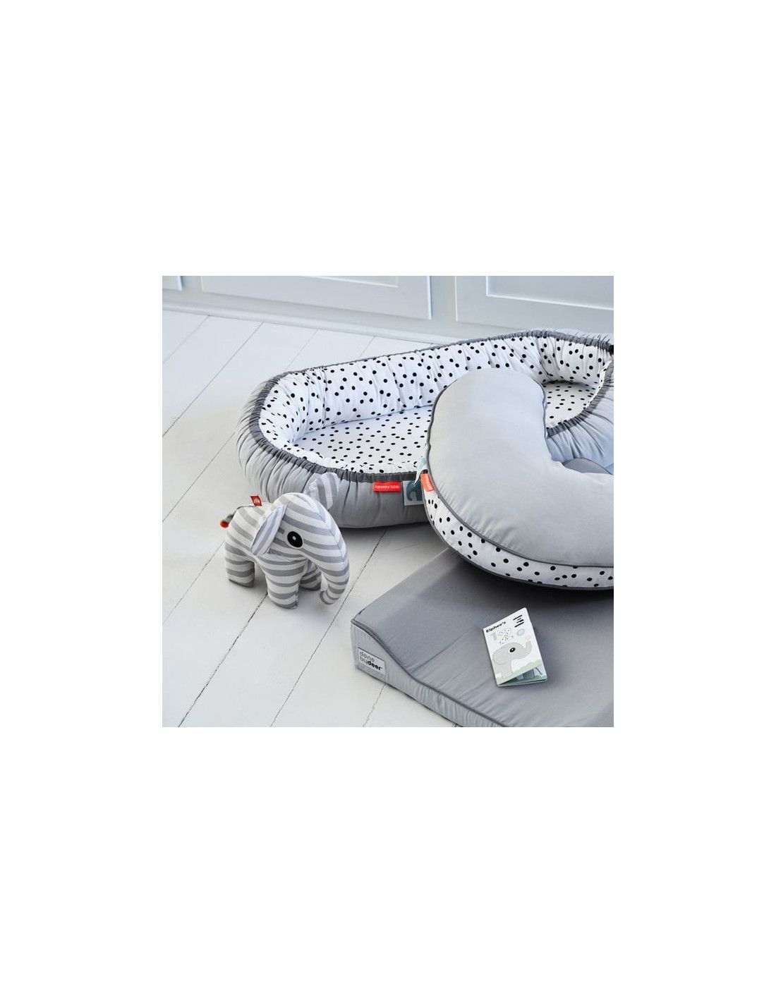 Przytulne gniazdko dla noworodków i niemowląt delikatnie otula oraz pozwala maluszkowi leżeć w pozycji pół-płodowej, pomagając w stopniowym prostowaniu ciała i łagodnym przystosowywaniu się do nowej, rozprostowanej pozycji. Idealne dla dziecka zarówno podczas leżenia lub drzemki na łóżku, wózku lub łóżeczku. Wielkość gniazdka można dostosowywać za pomocą regulacji ściągaczami lub rozpiąć gdy dziecko będzie rosło. Gniazdko dopasowuje się do ciała maluszka i zapewnia stabilizację, wspomagając przy tym codzienną opiekę nad noworodkiem.