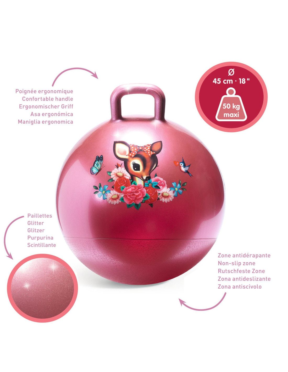 Odkryj magię aktywnej zabawy dzięki piłce do skakania Jumpa FIONA od Djeco. Ta urocza, opalizująca piłka z zachwycającymi refleksami przedstawia wizerunek małej sarenki otoczonej kwiatami, motylami i ptaszkami – idealna dla dzieci w wieku 3–6 lat.