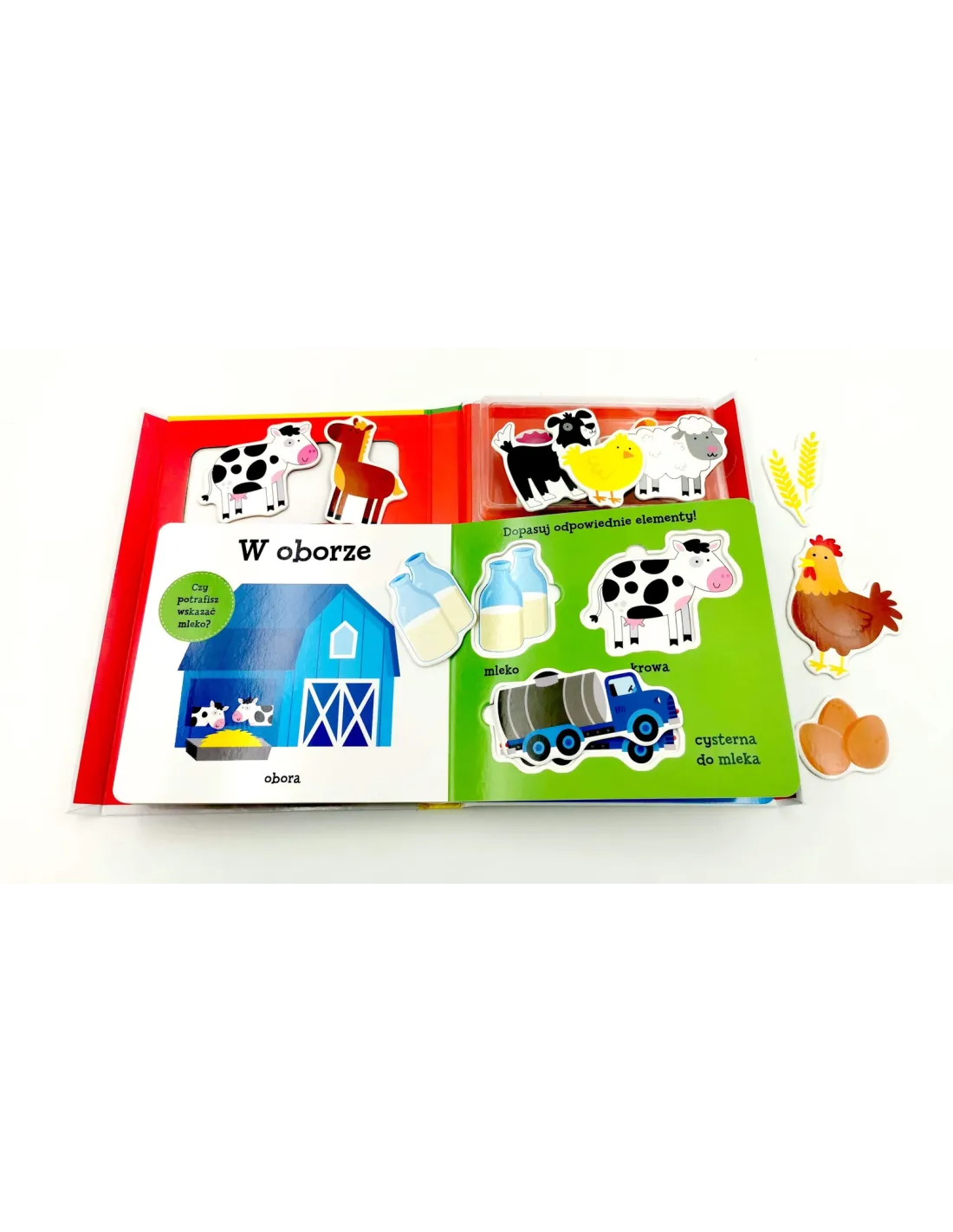 Książka edukacyjna – wprowadzająca dziecko w świat zwierząt gospodarskich, maszyn rolniczych i przedmiotów codziennego użytku na farmie.