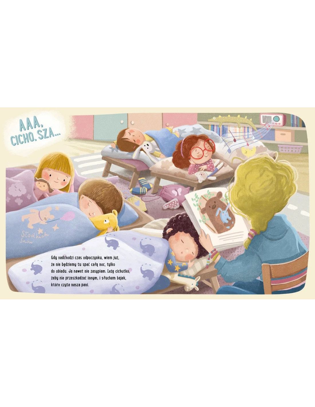 Ta ujmująca książeczka stanowi doskonałą pomoc dla całej rodziny, która przygotowuje się na ten ważny moment w życiu malucha. Przejmujące i pogodne ilustracje ukazują wnętrza przedszkola oraz wybrane momenty z przebiegu dnia, co skłania do radosnego oczekiwania. Wspólne czytanie staje się pretekstem do ważnych rozmów, pomagając dziecku oswoić się z nową sytuacją. Dzięki tej książce maluchy będą bardziej spokojne i z radością powitają nowych kolegów.