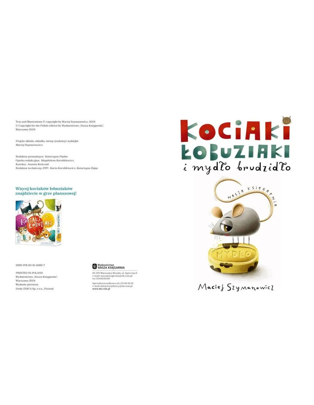 Kociaki Łobuziaki i Mydło Brudzidło to interaktywna, pełna humoru książka, która z pewnością przypadnie do gustu wszystkim maluchom, a zwłaszcza tym, którzy nie przepadają za myciem. Doskonała zabawa gwarantowana!