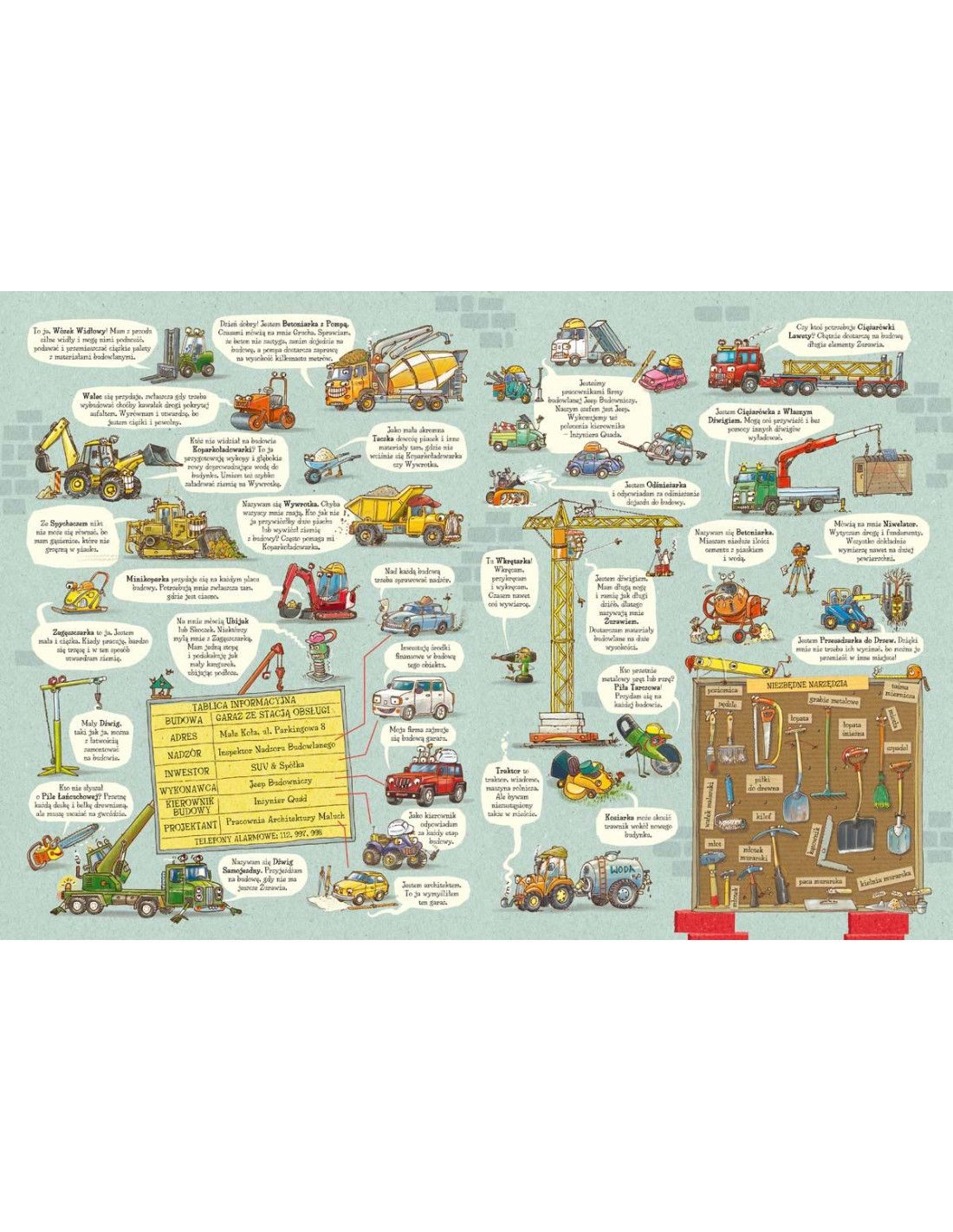 Przygotuj się na pełną przygód podróż w świat budownictwa z książką „Rok na placu budowy”! W miasteczku rusza budowa nowoczesnego garażu ze stacją obsługi pojazdów i myjnią, a na placu budowy zjawia się Jeep Budowniczy wraz z całą ekipą niezwykłych maszyn: Koparką, Walcem, Spychaczem, Żurawiem i Betoniarką.