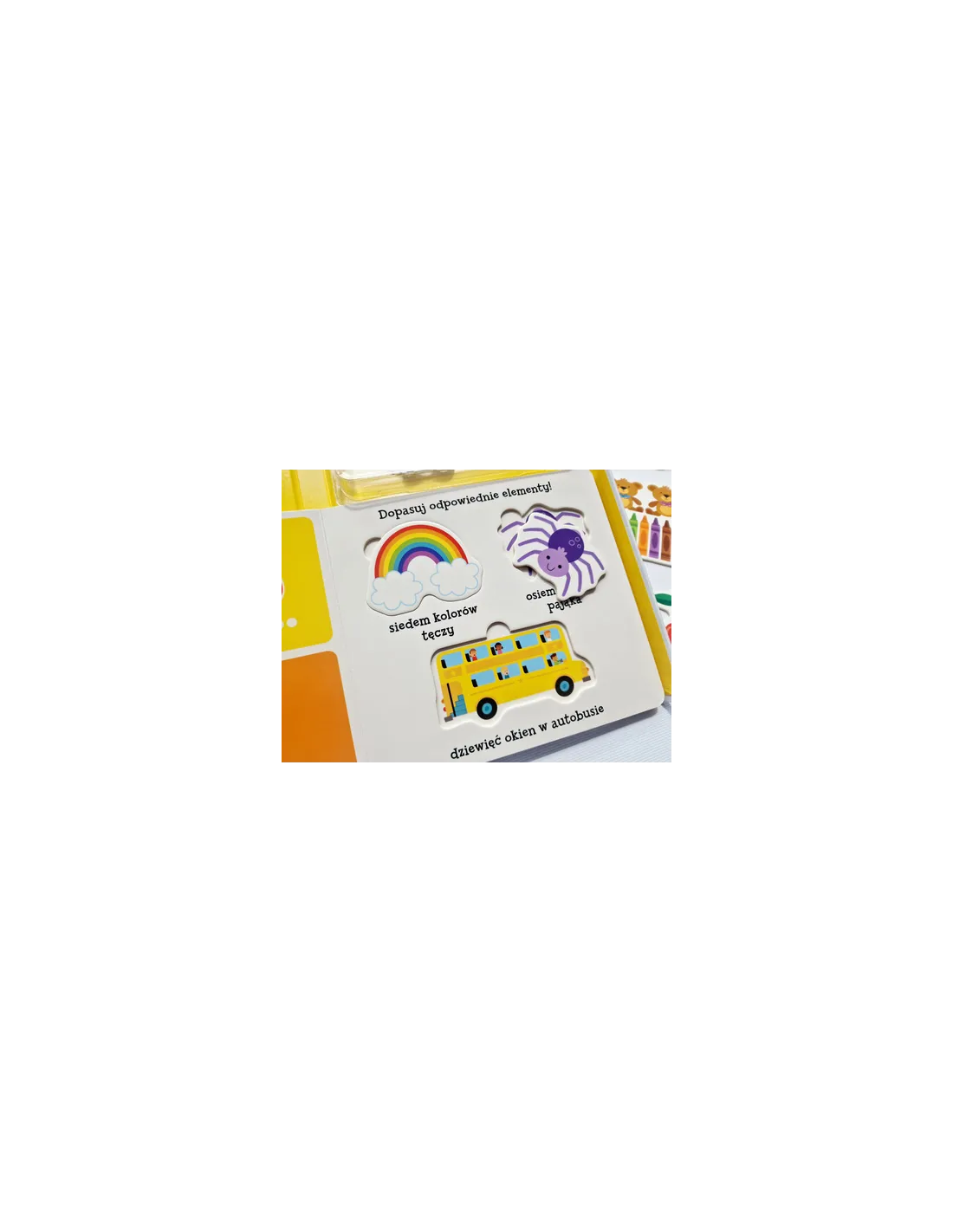Każda strona książeczki zachęca dziecko do aktywnej nauki – maluch może przejechać paluszkiem po pustych miejscach na stronie i zobaczyć, jak wygląda dana liczba. Następnie należy znaleźć odpowiedni puzzel i umieścić go we właściwym miejscu, co ćwiczy spostrzegawczość i koordynację ręka-oko. Zabawa może być jeszcze bardziej kreatywna – dzieci mogą pokazać daną cyfrę na paluszkach lub policzyć swoje zabawki, np. autka, pluszowe misie czy kredki. Dzięki temu nauka liczenia staje się naturalną częścią codziennych zabaw.