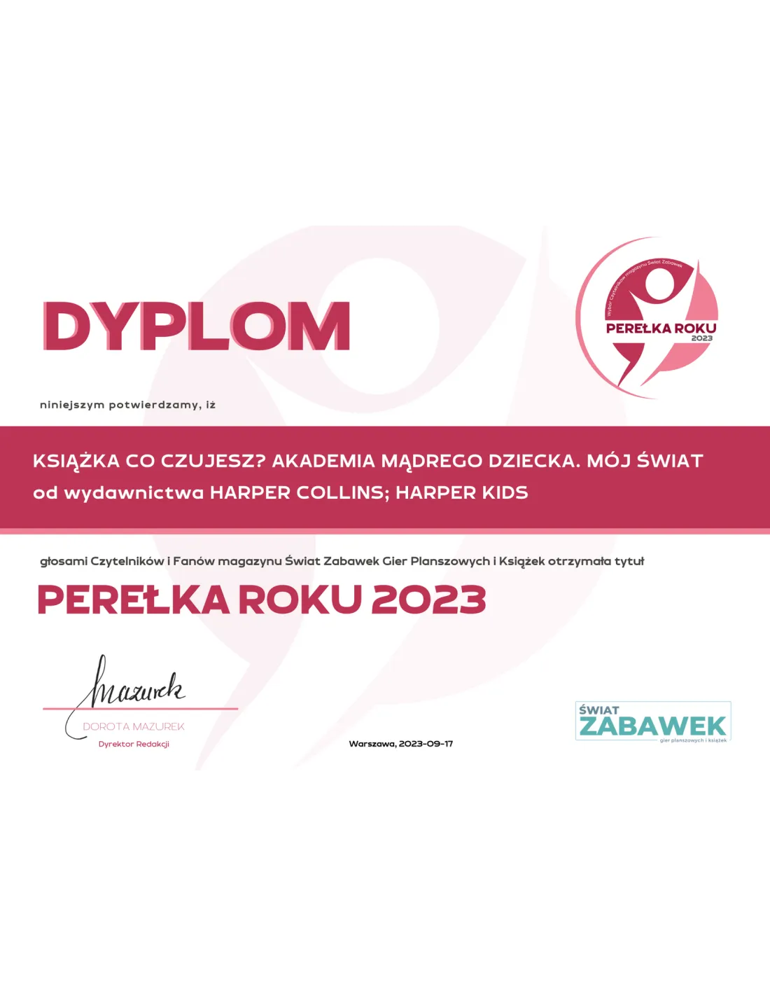 „Co czujesz? Akademia Mądrego Dziecka. Mój świat” HarperKids to interaktywna książka edukacyjna dla dzieci, która wprowadza maluchy w świat emocji i uczuć.