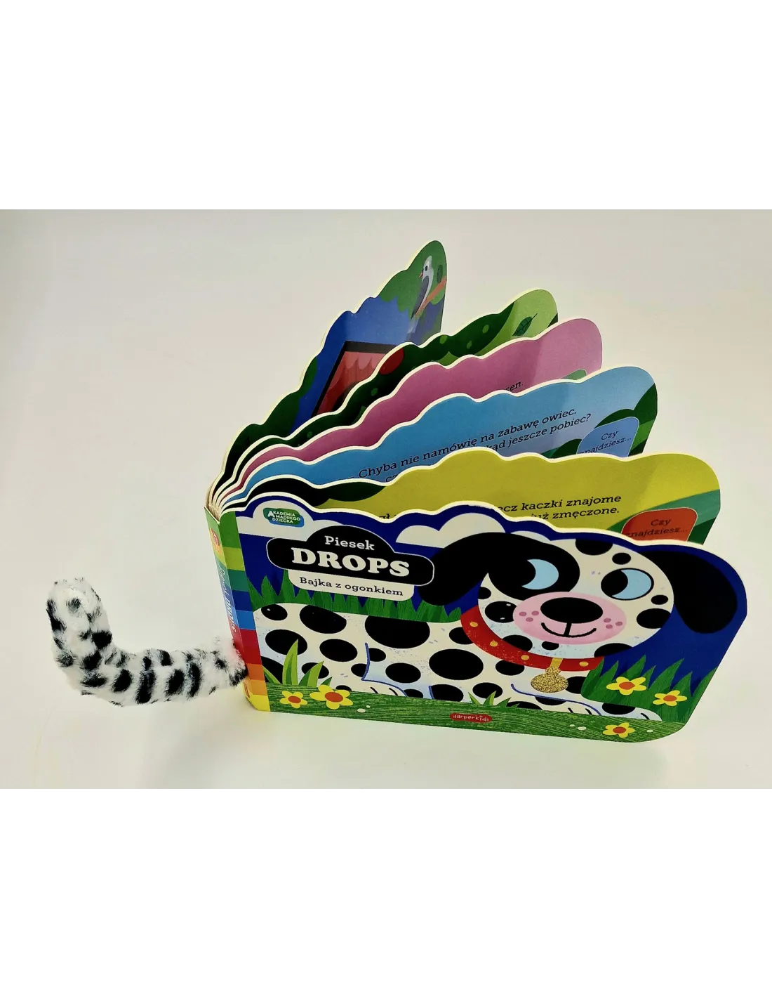 Książeczka Piesek Drops. Akademia Mądrego Dziecka. Bajka z ogonkiem zawiera interaktywny element: