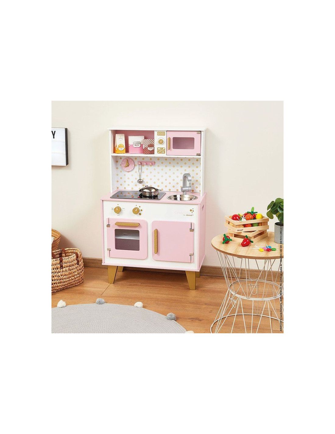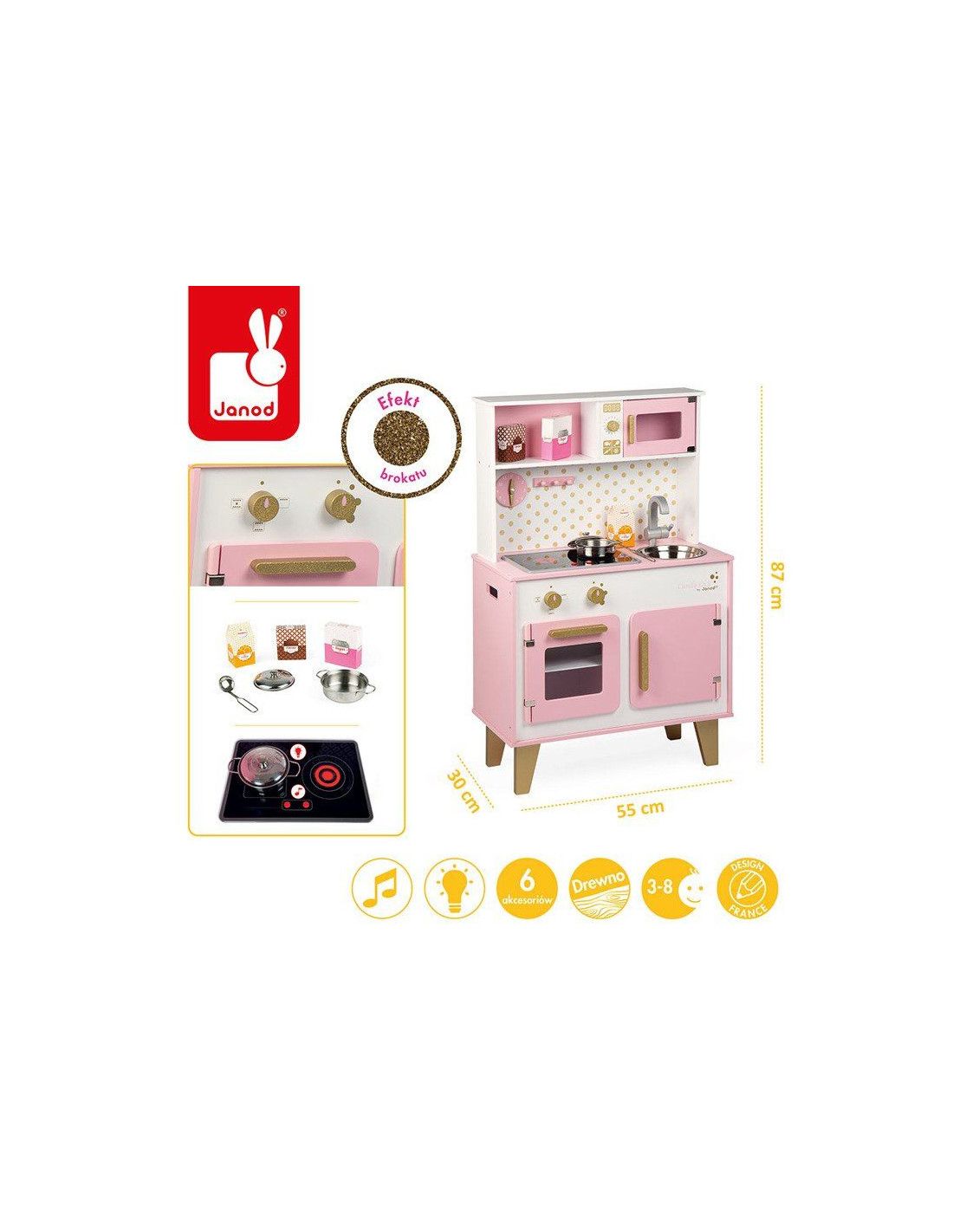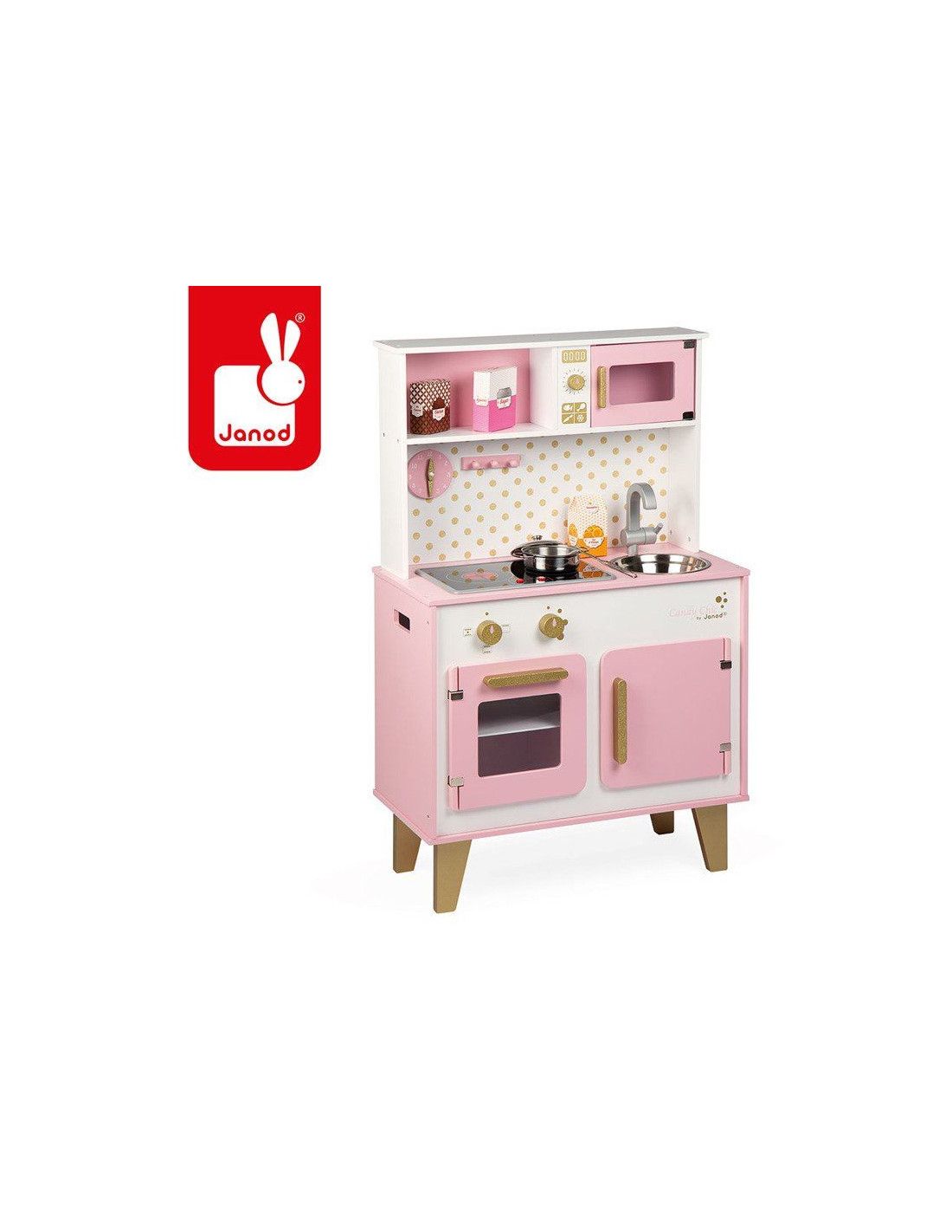 Janod Duża Kuchnia Drewniana z Dźwiękiem i 6 Akcesoriami - Candy Chic