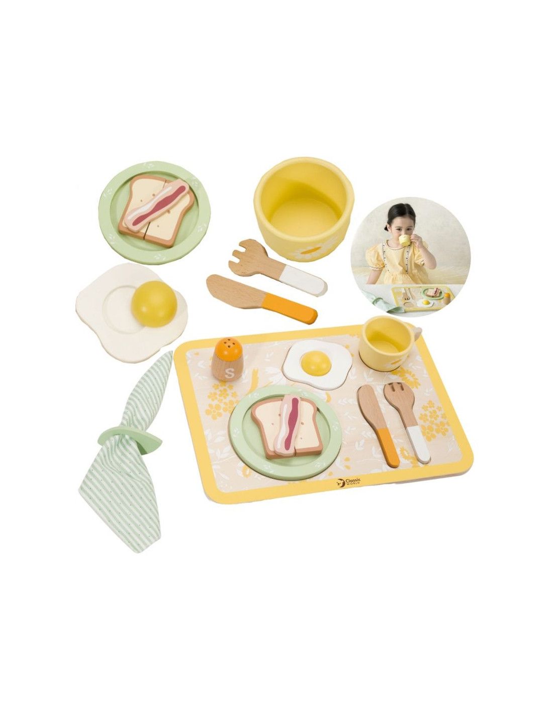 Zestaw Śniadaniowy od marki CLASSIC WORLD zapewni dziecku energię na cały dzień oraz doskonale pobudzi kreatywność maluszka. Zestaw zawiera oddzielne jajko w koszulce, tosty i bekon, nóż i widelec itp. Może zaoferować wiele pomysłów na zabawę, a także pomóc w kultywowaniu dobrych manier przy stole u dzieci.