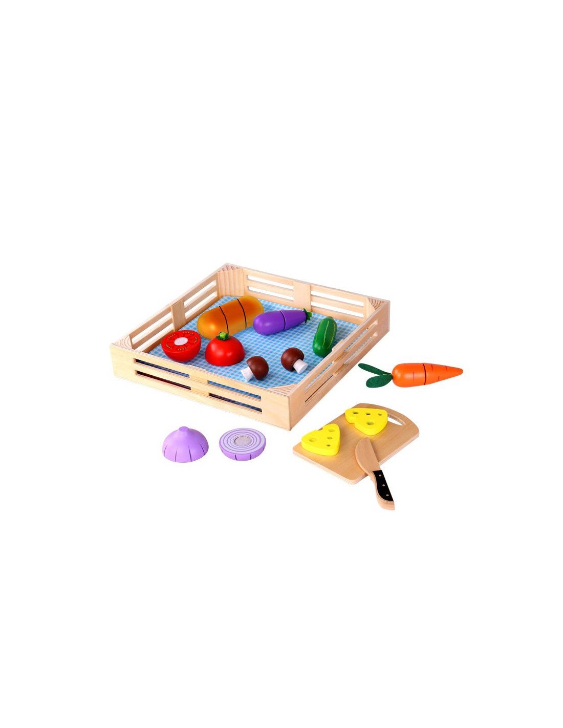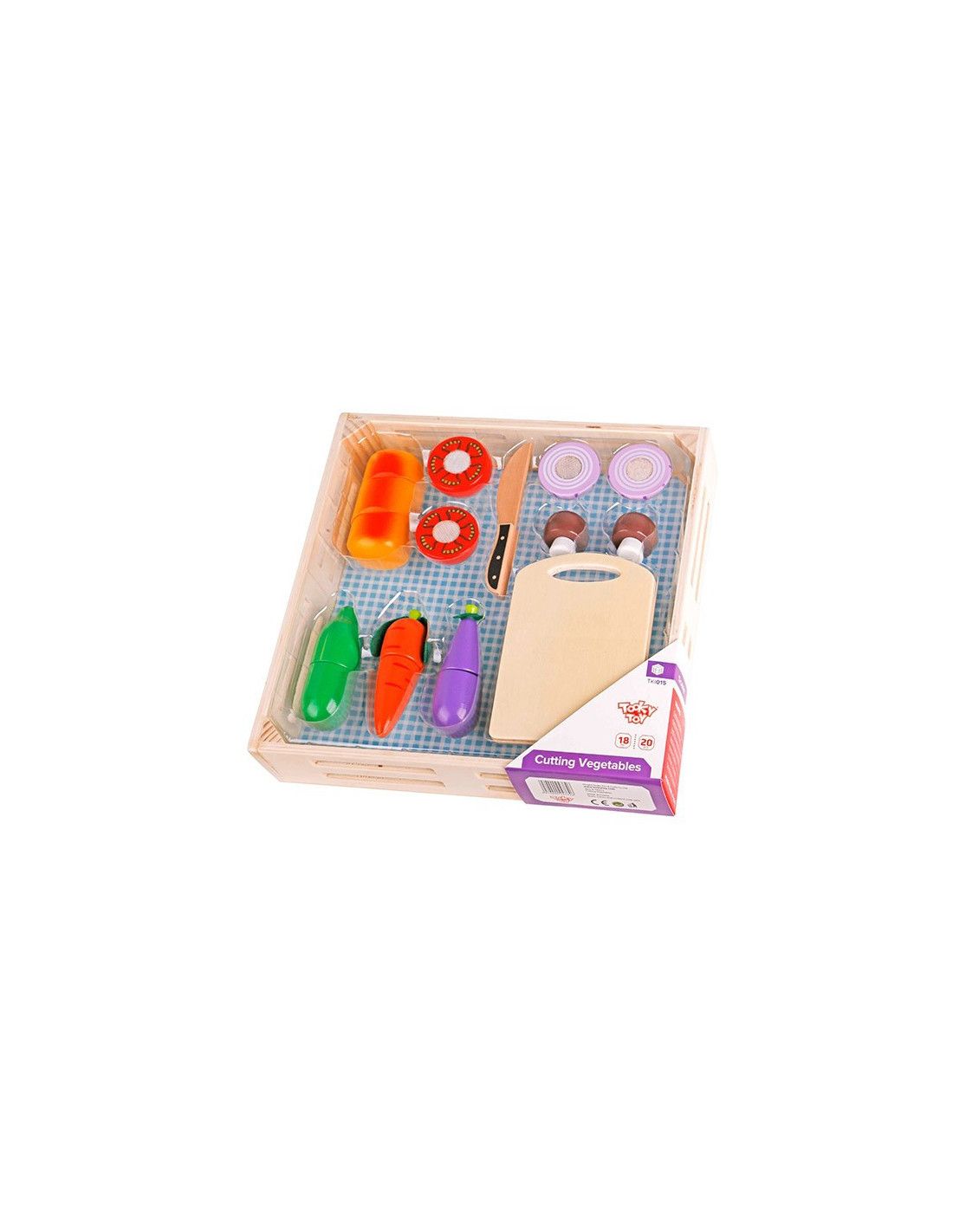 Drewniane Warzywa do krojenia na desce cenionego producenta zabawek Tooky Toy dla dzieci od 18 miesiąca życia idealne pasuje do przedszkola jak i do domu. Dziecko będzie mogło wykonywać czynności z życia codziennego. Zabawka może być wykorzystywana również jako układanka. Zestaw pozwoli na rozwijanie się różnych umiejętności przydatnych w późniejszym życiu. Zabawka jest wielofunkcyjna dzięki czemu dziecko może bawić się na różne sposoby. Nasza pociecha wcięli się w role kucharza we własnej kuchni. Wszystko zależy od kreatywności dziecka.