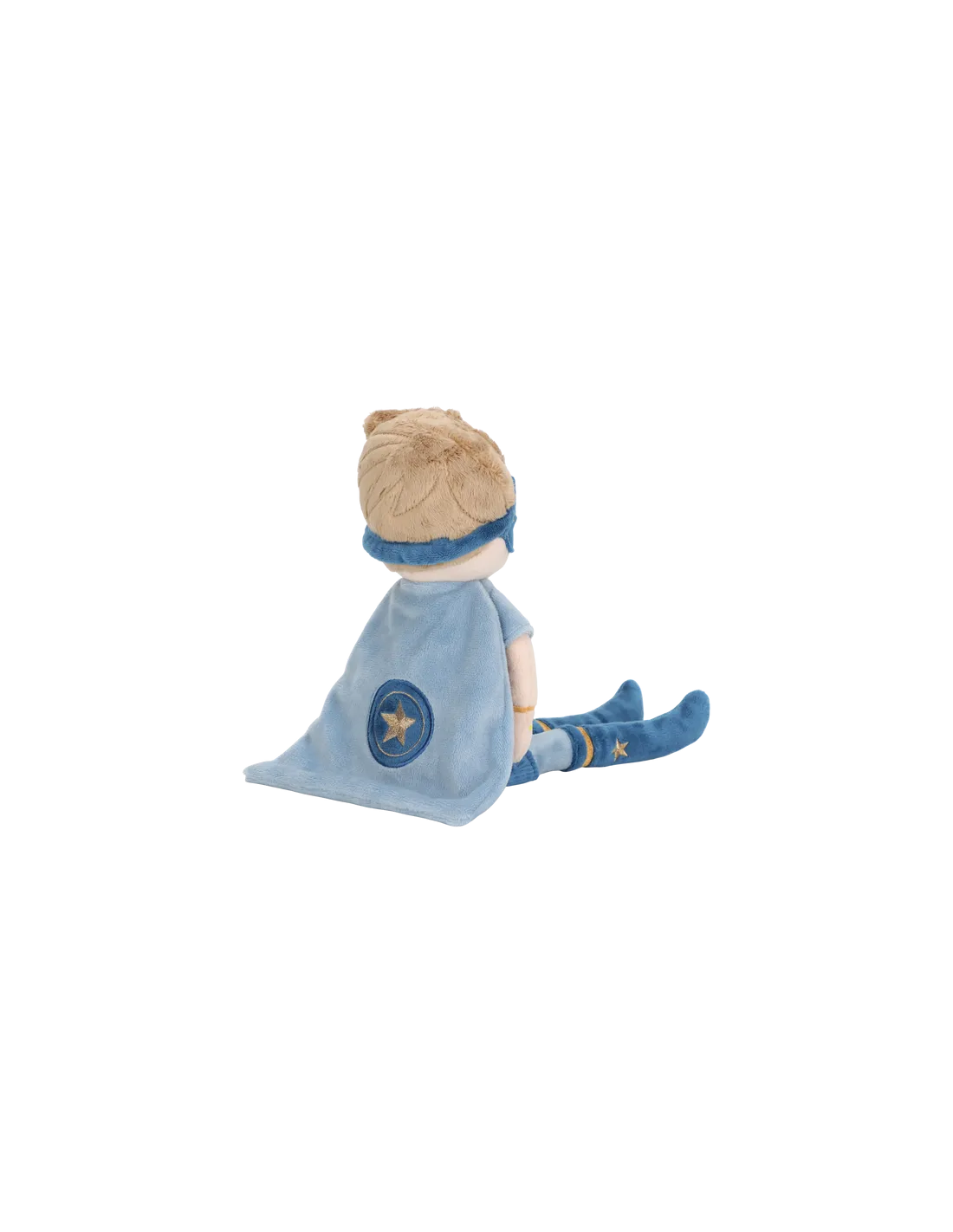 Uroczy superbohater w odważnej masce, z miękką peleryną i złotą gwiazdą na piersi inspiruje do tworzenia niezwykłych historii i zabawy w odgrywanie ról.