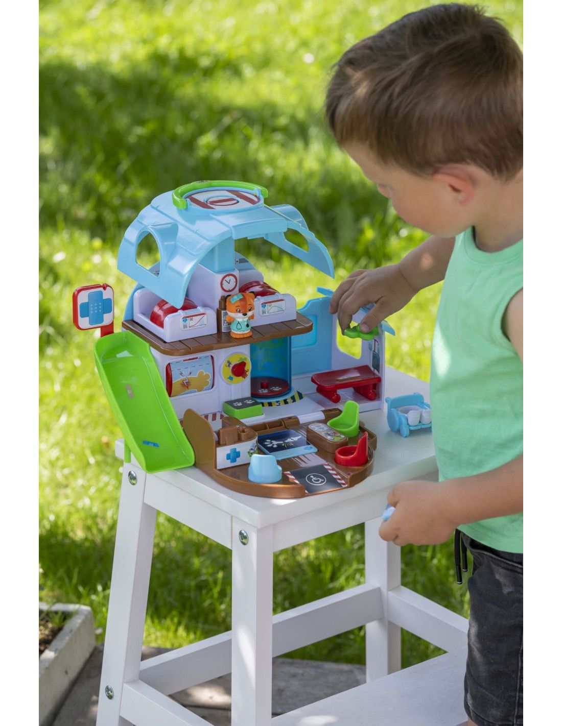 Zabawka została zaprojektowana z dbałością o każdy szczegół – znajdziesz tu otwierane drzwi, ruchome elementy, a także liczne akcesoria, takie jak łóżka, sprzęt medyczny i figurki pacjentów. Dzięki kompaktowej konstrukcji szpital można łatwo złożyć i zabrać ze sobą wszędzie.