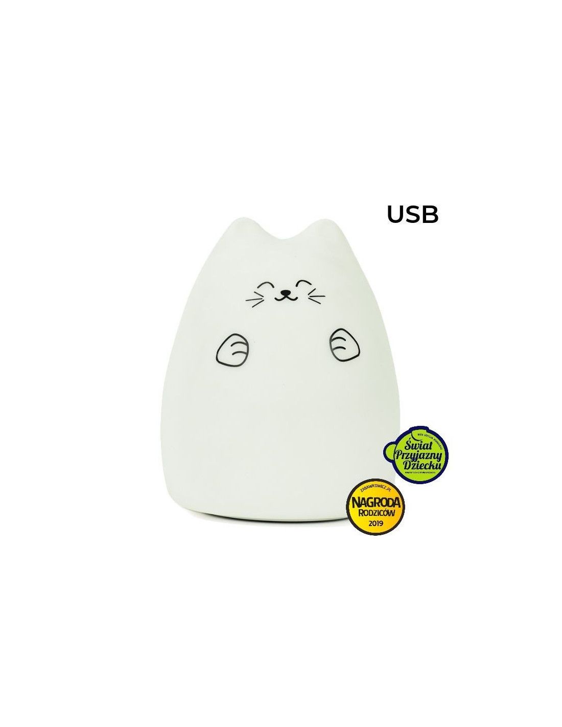 Miękka, silikonowa lampka kotek ze zmieniającym się światłem.