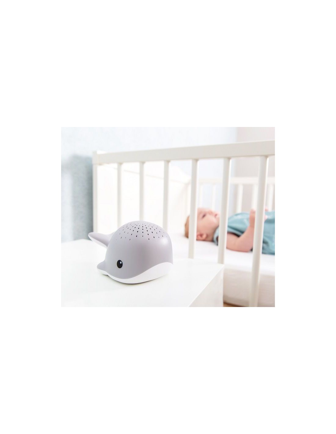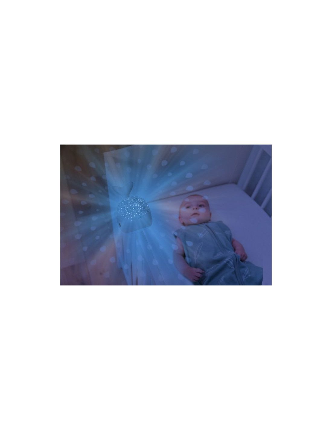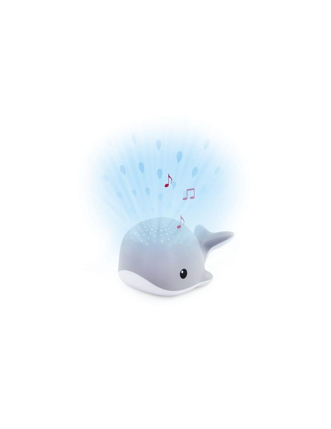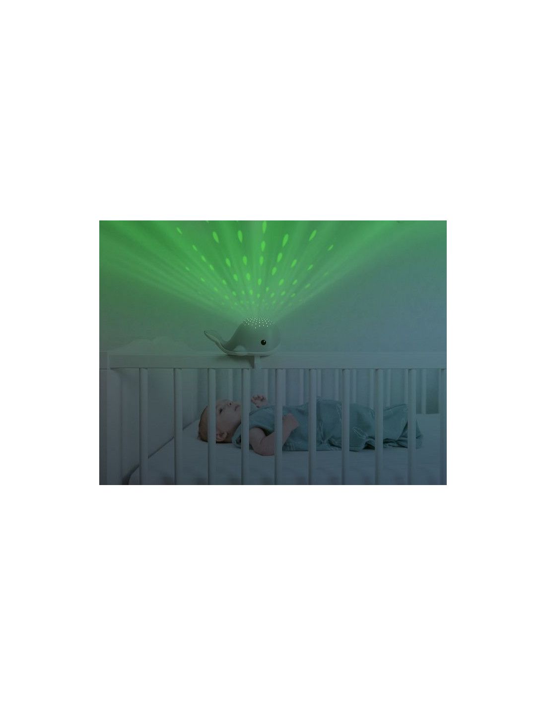 Poznaj Wally'ego który wyświetla na suficie projekcję kropelek wody. Wieloryb wyświetla kropelki wody w 4 różnych kolorach: czerwony, niebieski, zielony lub wielokolorowy. Projektor ma również wgrane 3 kojące melodie: ocean, bicie serca i kołysanki. Światło projektora wyłącza się automatycznie po 30 minutach, a kojąca melodia po 15 minutach. Wally posiada czujnik płaczu. Gdy maluch zaczyna płakać, wieloryb włącza się automatycznie uspokajając Malucha bez konieczności wchodzenia rodziców do pokoju. Będzie idealnym towarzyszem podczas snu dla dziecka w każdym wieku. Z projektorem Maluch będzie czuł się bezpiecznie i komfortowo, a uspokajające melodie i dźwięki ukołyszą dziecko do snu. Świecące w trzech wersjach kolorystycznych kropelki rozświetlą pokój, jednocześnie pomaga dziecku wyciszyć się i zrelaksować przed snem. Dołączony pasek na rzep umożliwi przymocowanie projektora do łóżeczka.