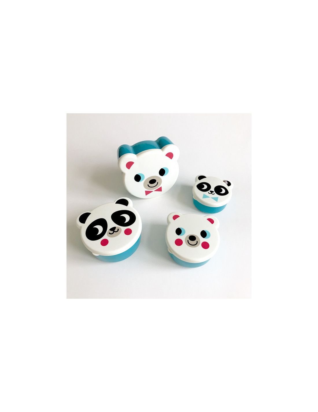 Zestaw 4 pudełek na przekąski w różnych rozmiarach.