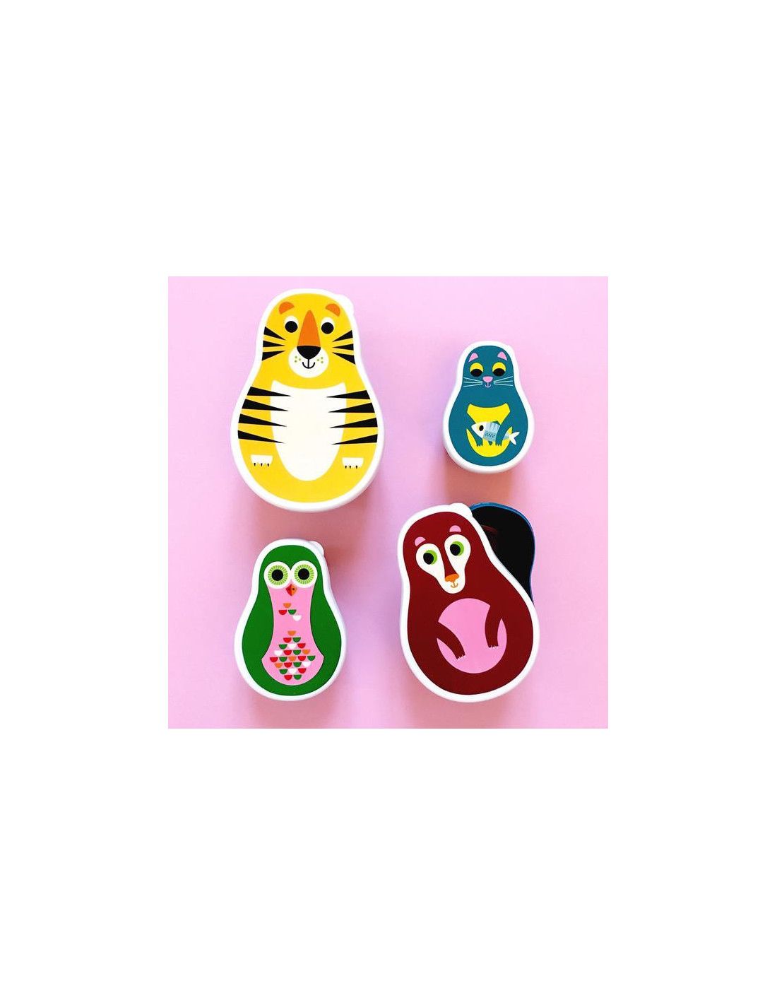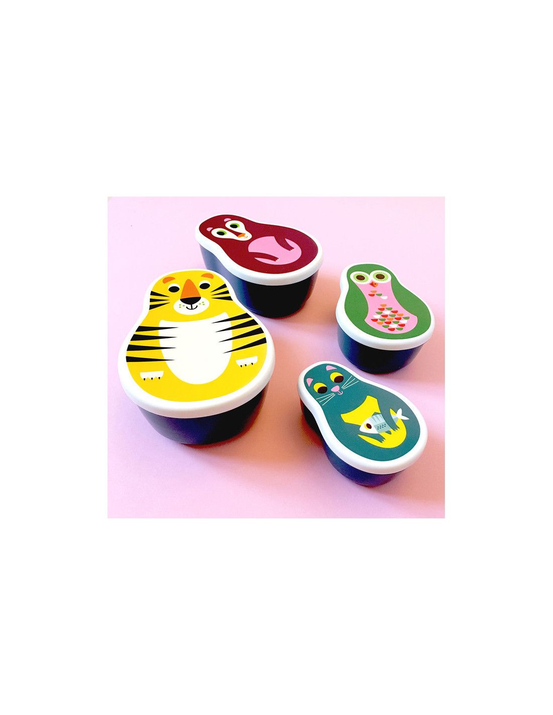 Kolorowe lunchboxy to świetny sposób na niejadka. Mają urocze wzory oraz ciekawe kształty. Zestaw 4 pudełek śniadaniowych o różnych rozmiarach, zaprojektowanych tak, aby zajmowały jak najmniej miejsca, to również świetna zabawa dla malucha, który może wkładać do nich różne przedmioty, zamykać w środku i potrząsać nimi jak grzechotką !