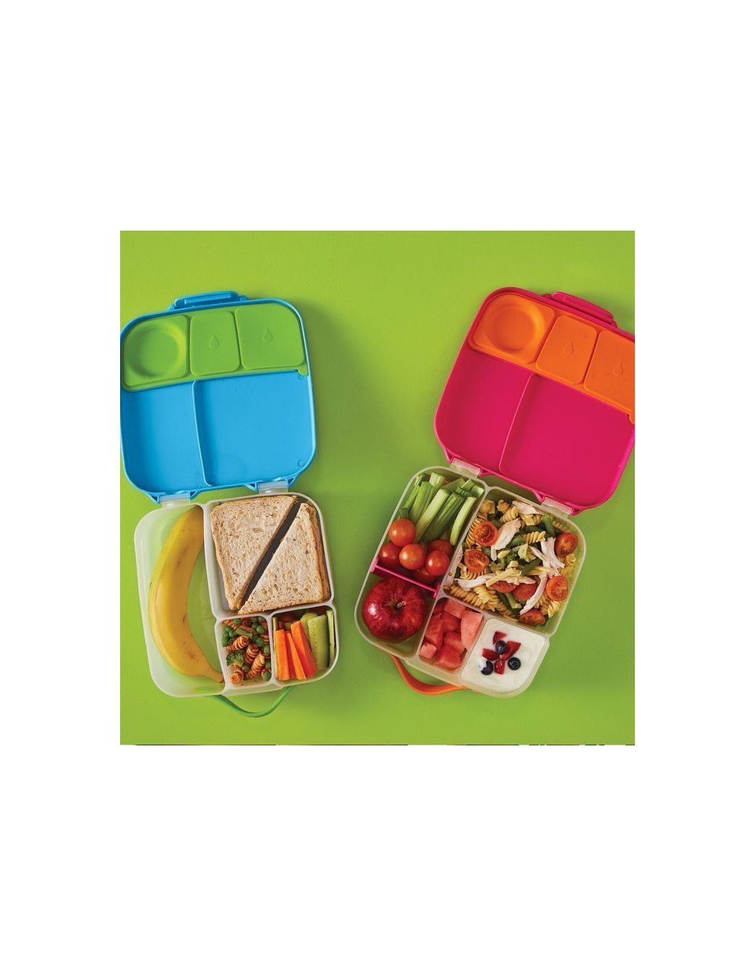 Duży lunchbox z uchwytem do przenoszenia, posiada kilka przegródek różnej wielkości, które można dopasować do pakowanego jedzenia. Wyposażony w miejsce na wkład chłodzący (w zestawie) świetnie sprawdzi się jako lunchbox do szkoły, przedszkola czy na wycieczkę.