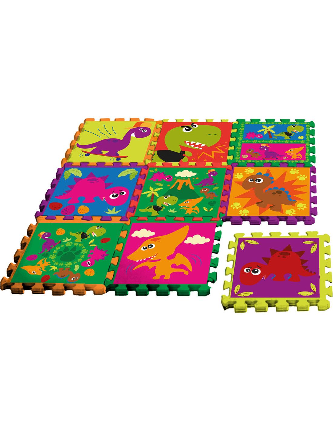 Mata piankowa , puzzle motywem Crazy Dino jest świetnym sposobem na stworzenie dziecku bezpiecznego miejsca do zabawy. Dziecko może się bawić w dowolnym miejscu będąc bezpiecznym a zarazem ograniczając ewentualne zabrudzenia powierzchni podłogi w domu. Dzięki połączeniom niczym puzzle możemy łączyć kolejne maty w dowolnej ilości i kształcie.