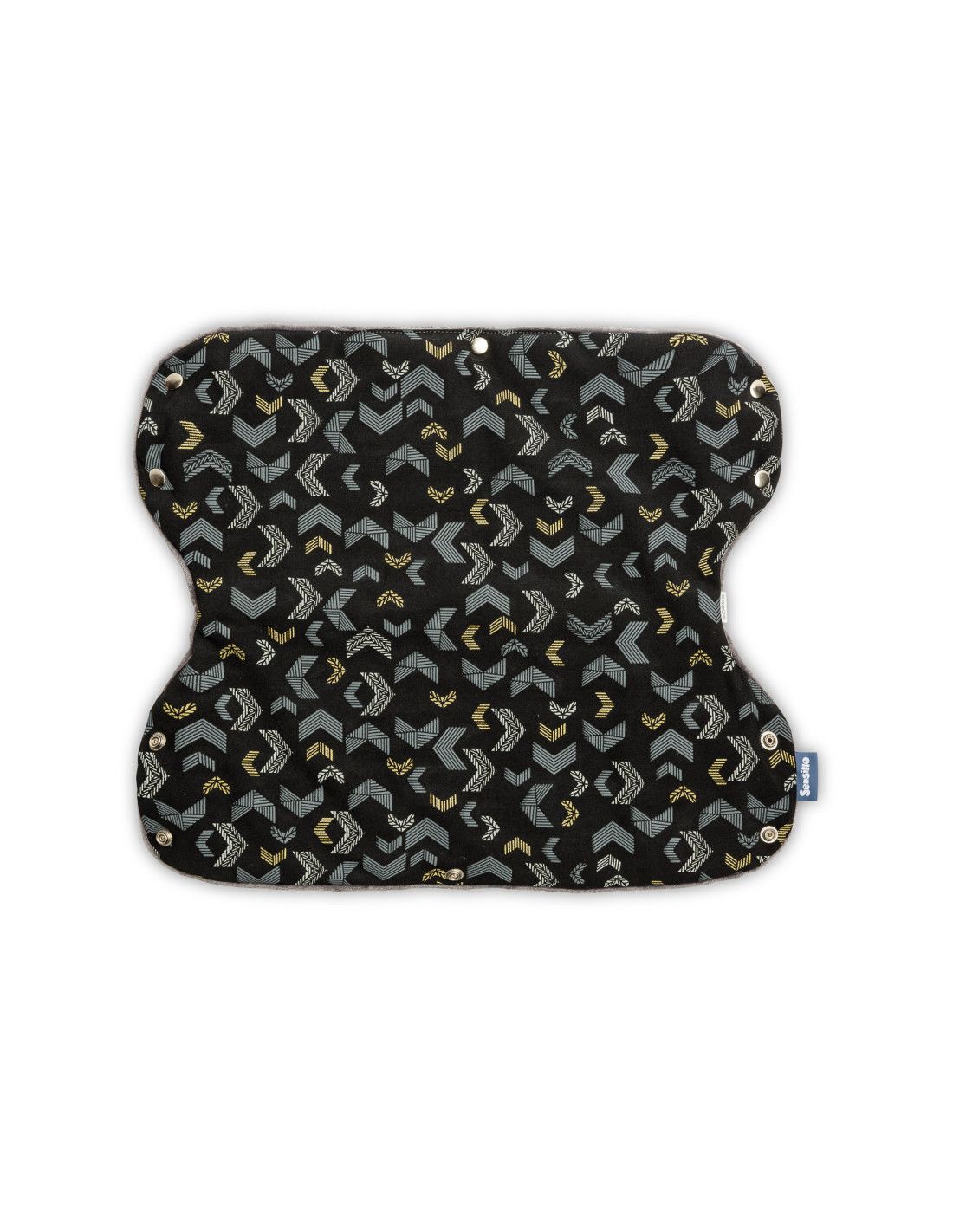 Mufka idealnie ochroni twoje dłonie przed zmarznięciem w trakcie jesiennego czy zimowego spaceru. Mufkę zapinamy napami, na łączonej rączce wózka , dzięki czemu utrzymuje dobrze swoje położenie. Z zewnątrz pokryta jest nieprzemakalnym materiałem, natomiast warstwę wewnętrzną stanowi miękki polar.