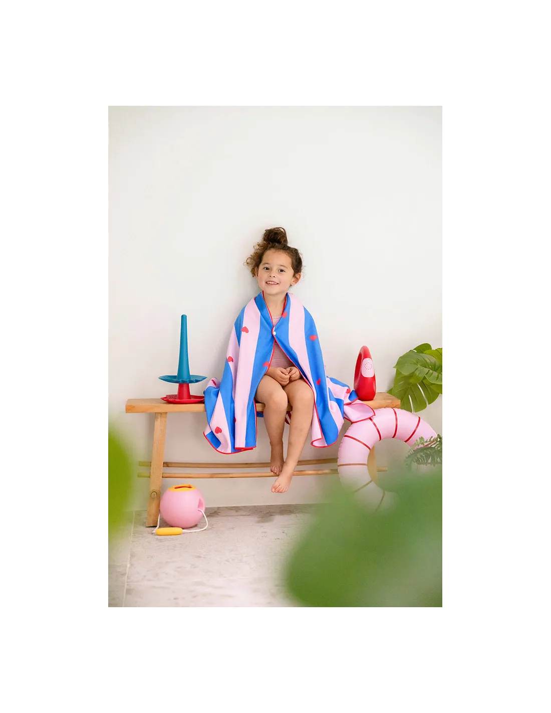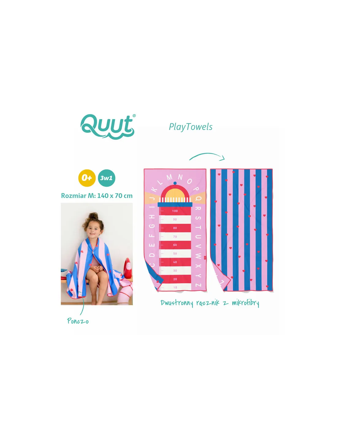 Dwustronny ręcznik plażowy PlayTowels belgijskiej marki QUUT to innowacyjne i praktyczne rozwiązanie dla aktywnych dzieci od pierwszych dni życia.