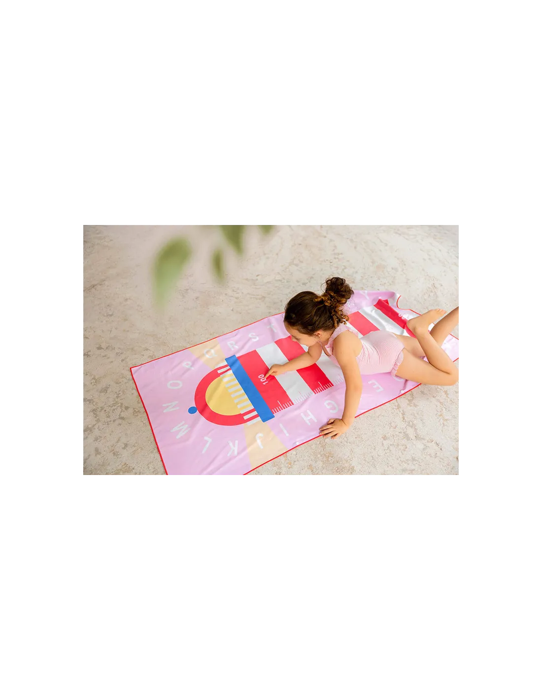 Ręcznik z mikrofibry o wymiarach 140 x 70 cm idealnie sprawdzi się na plaży, basenie, w ogrodzie czy podczas codziennych zabaw w domu. Dzięki unikalnemu designowi z motywem drogi, rond, pasów dla pieszych i parkingu, stanowi doskonałą matę do zabawy, która rozwija wyobraźnię i kreatywność maluchów.